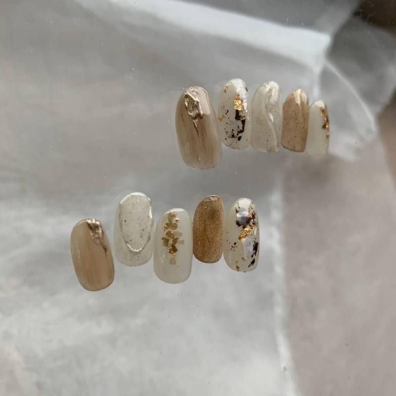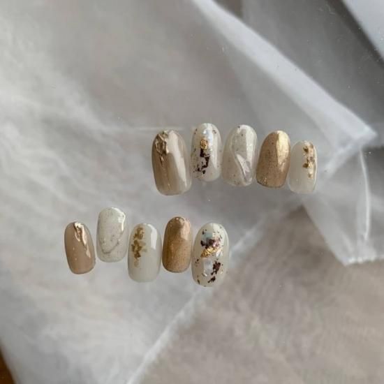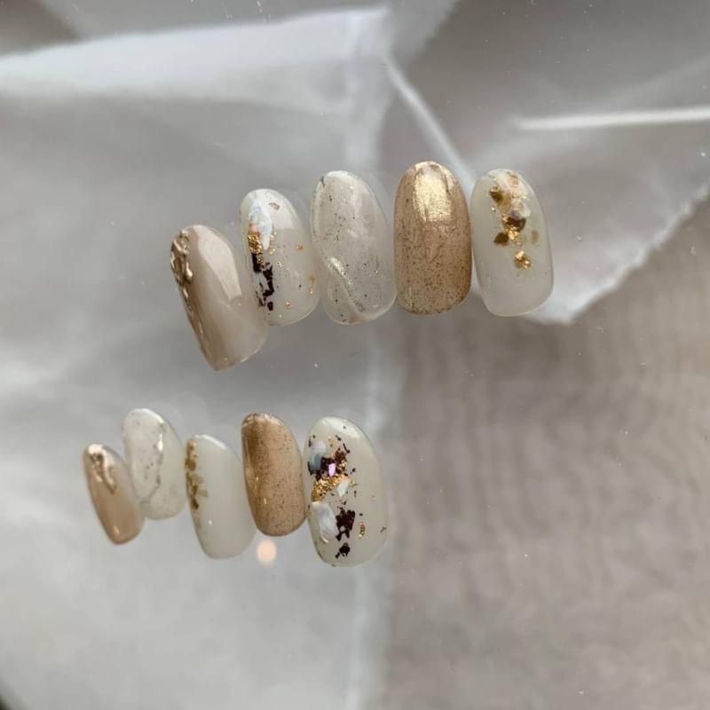 全体的に肌馴染みの良いベージュをベースにゴールドをポイントで組み合わせています。