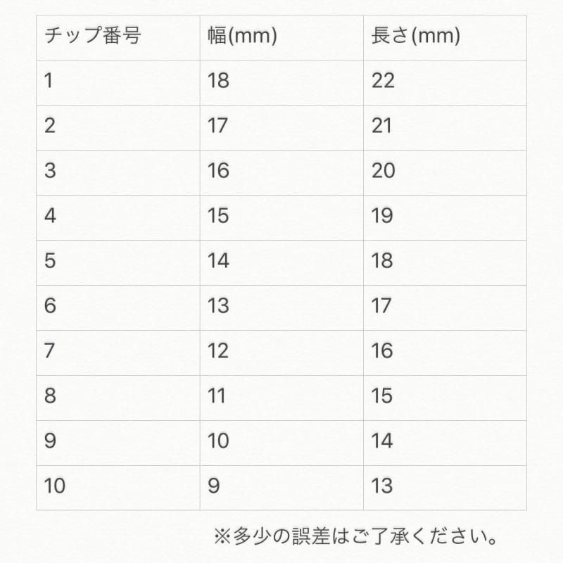 ご自身の自爪の『長さ』と『幅』を爪のカーブに沿って測って頂き、ご自身の爪に合ったサイズを備考欄に必ずご記入お願い致します。