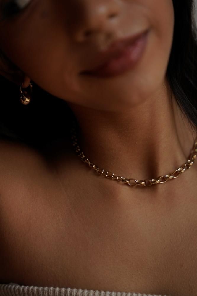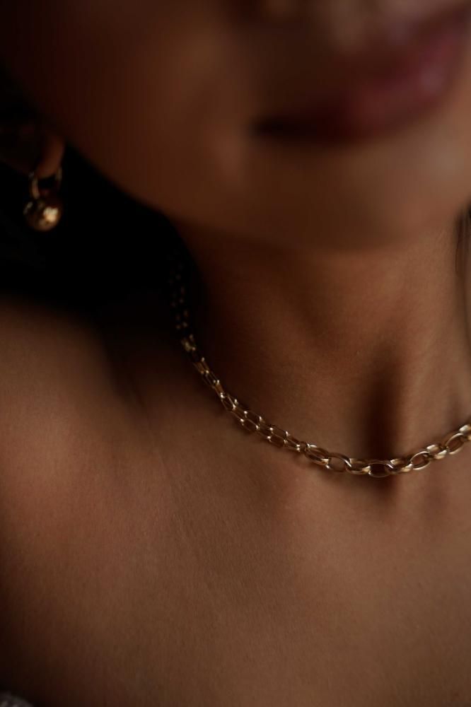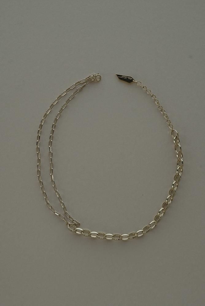 太さの違うチェーンを組み合わせた繊細なデザイン。華奢なラインが首元を美しく魅せてくれます。