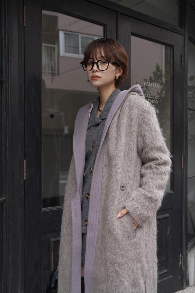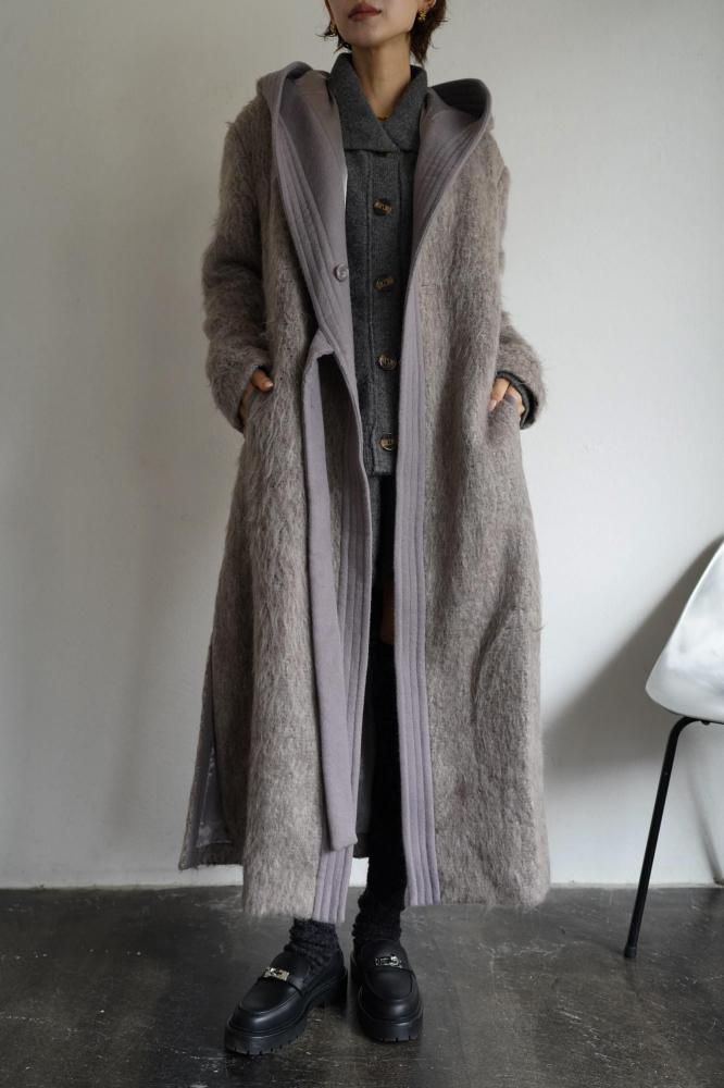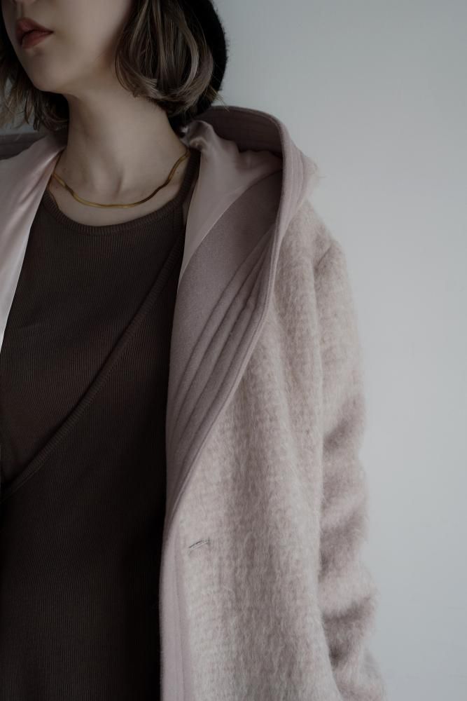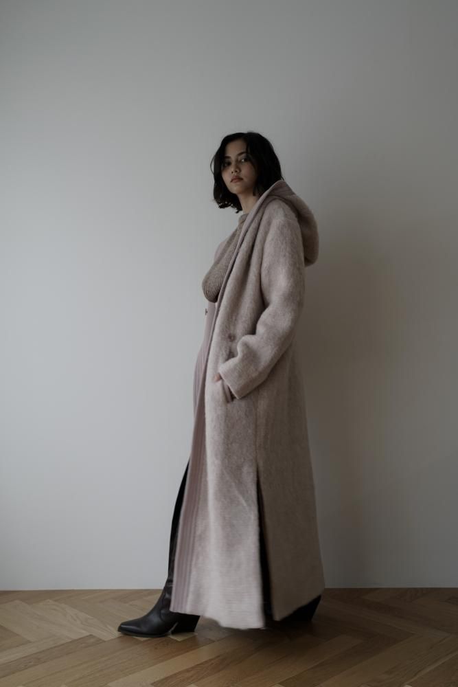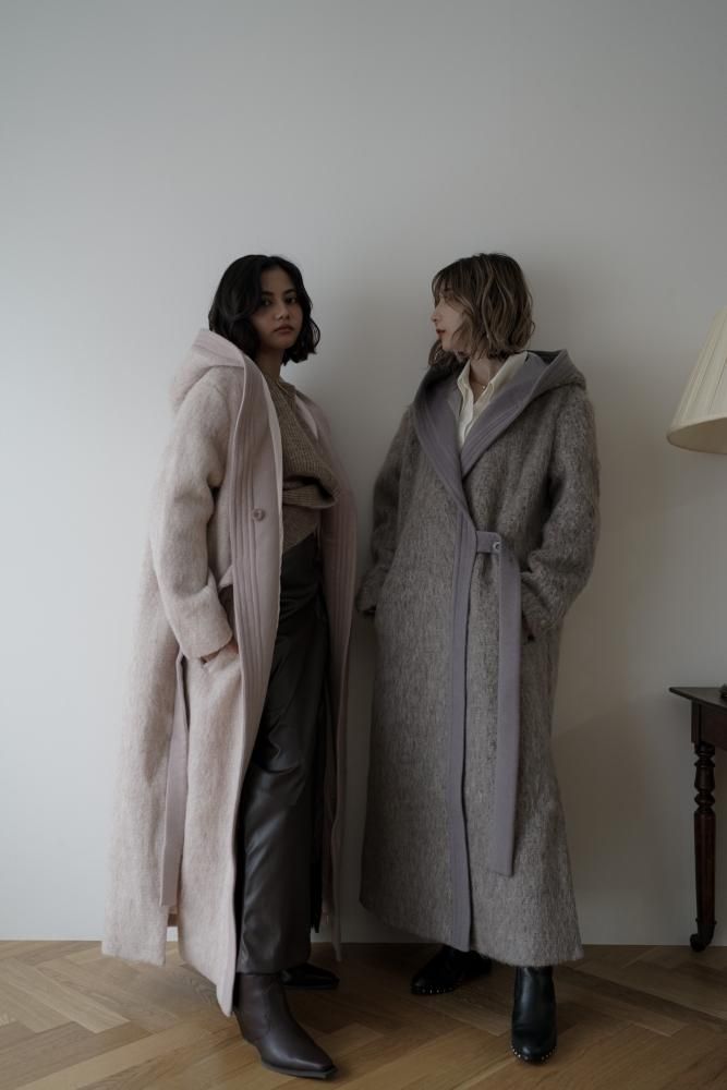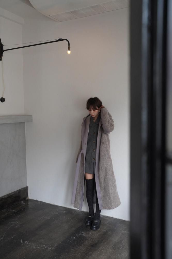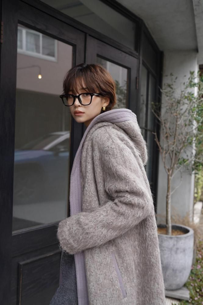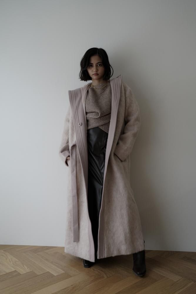無地のシャギー素材はコートをメインにしたスタイリングもお勧めです。