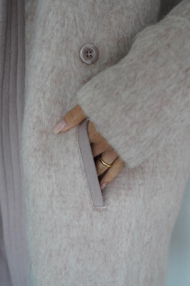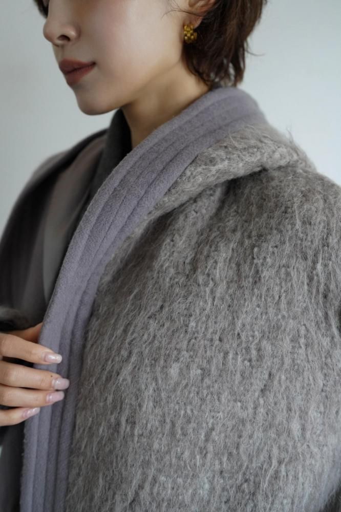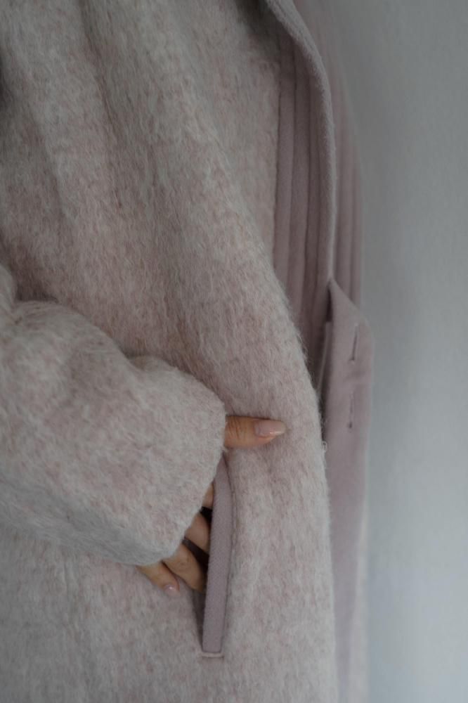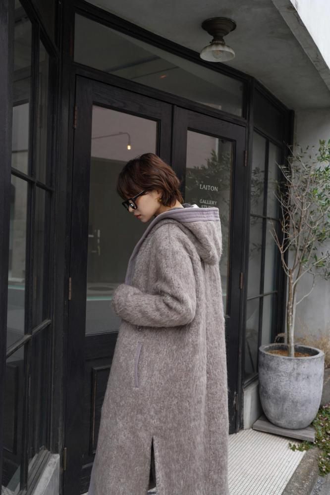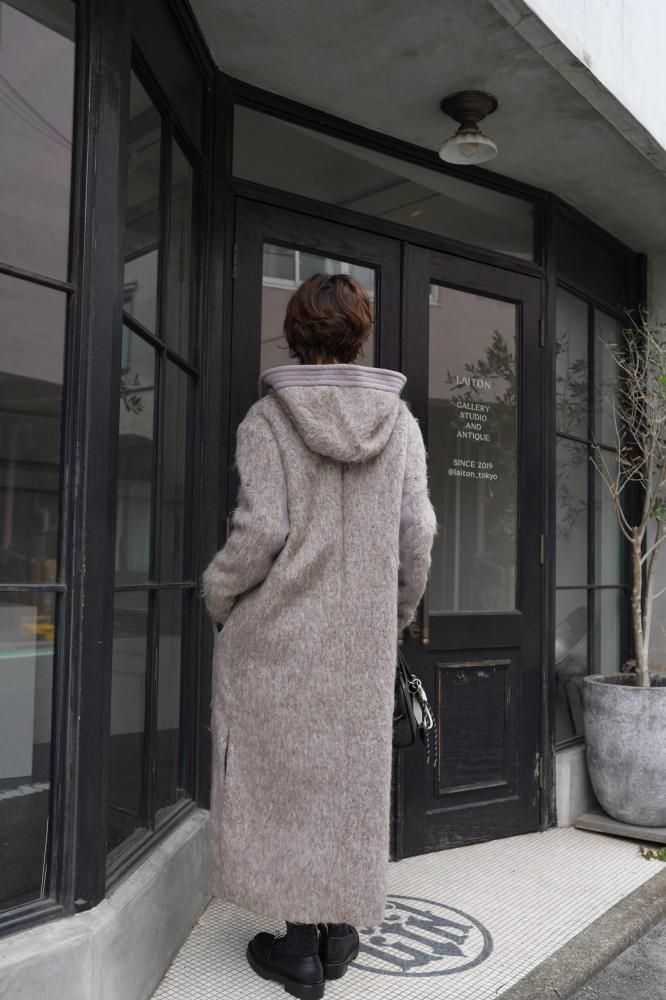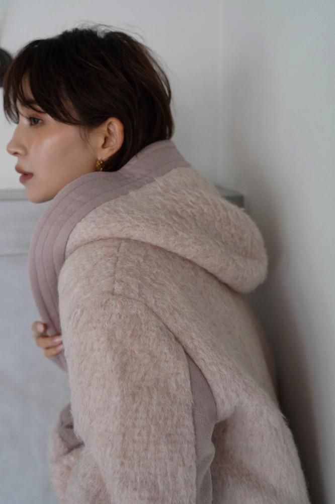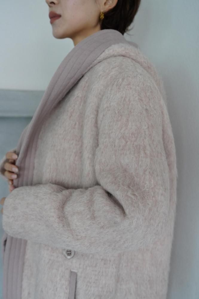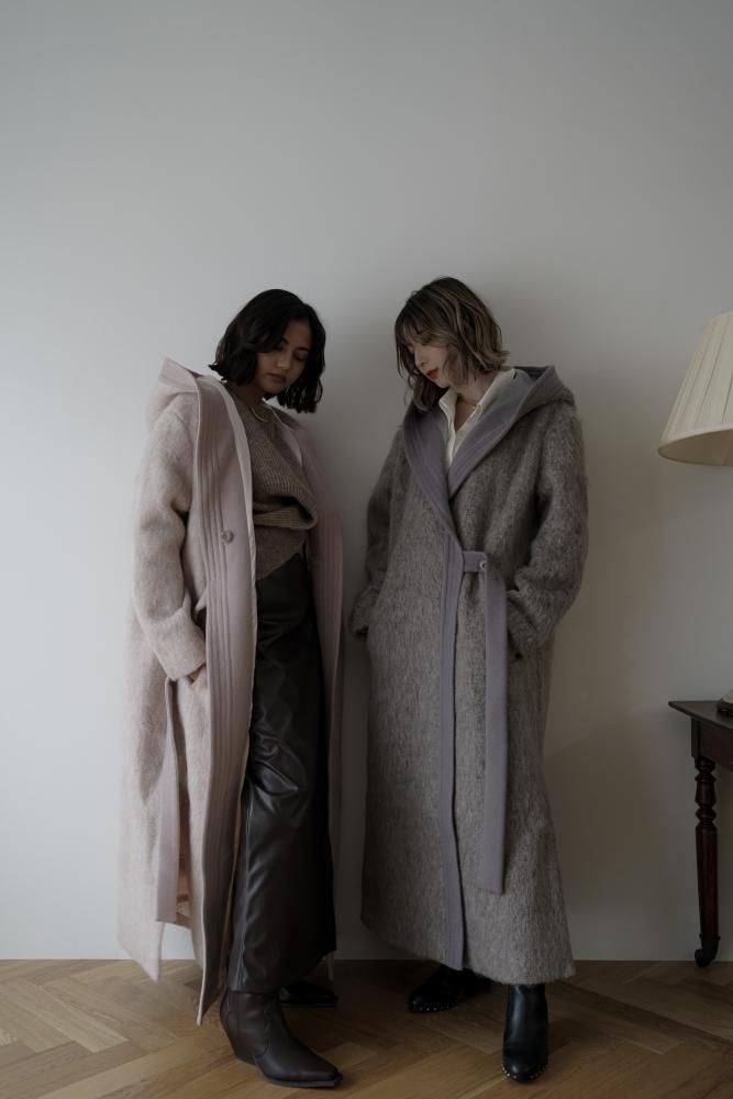 無地のシャギー素材はコートをメインにしたスタイリングもお勧めです。
