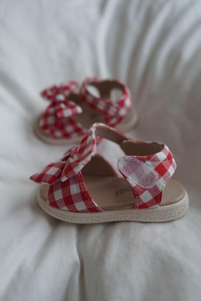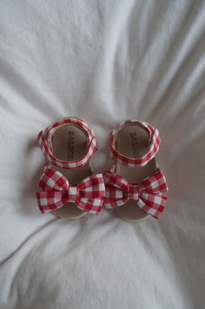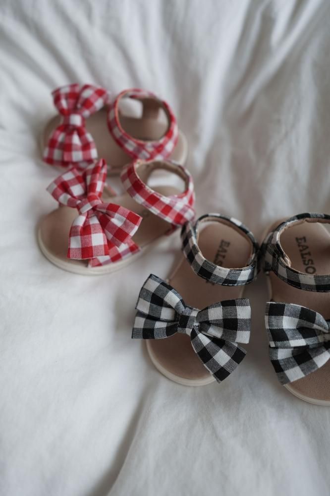 チェック柄のリボンはお出かけの時に赤ちゃんの小さな足元をさり気なく可愛く演出。