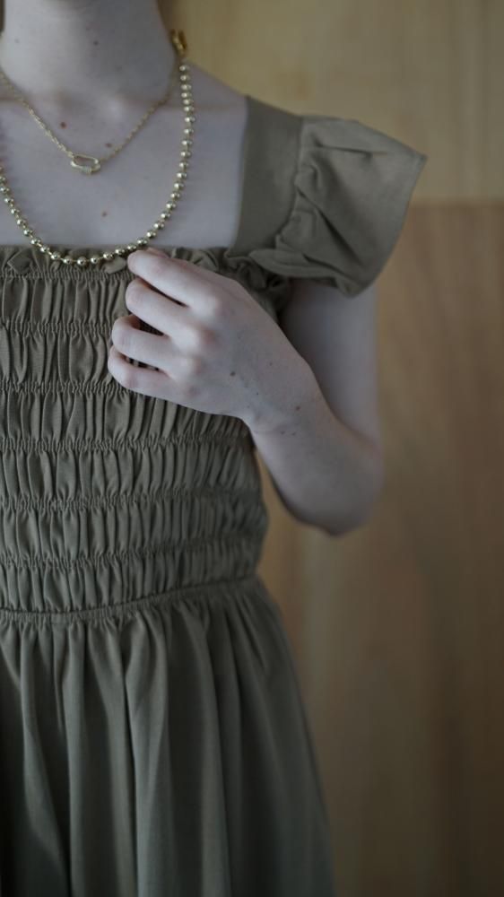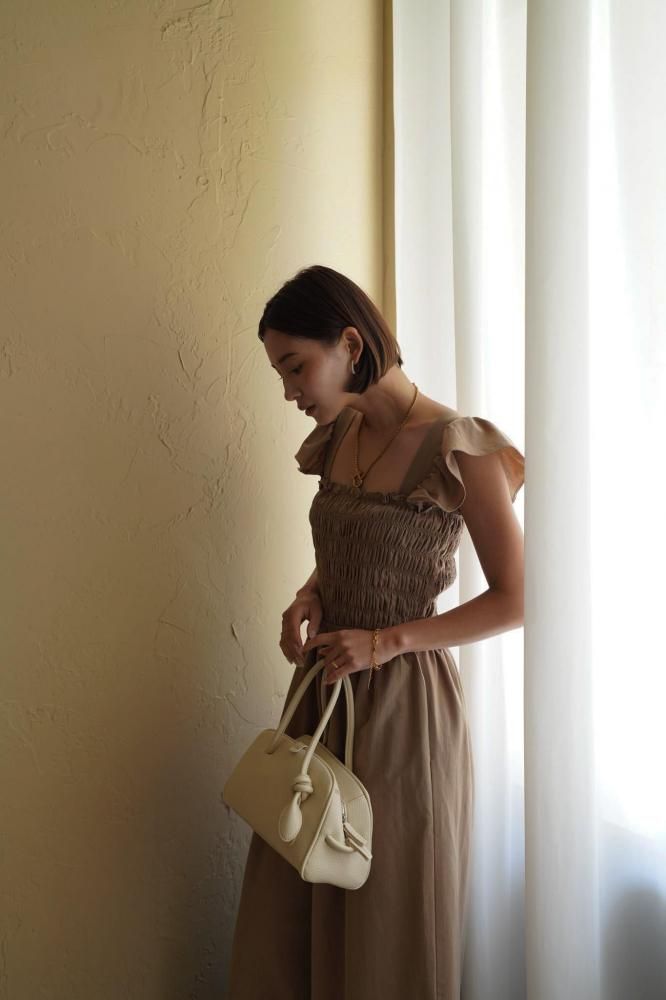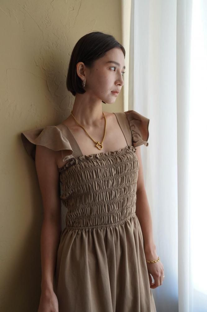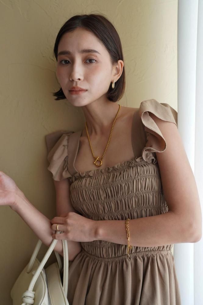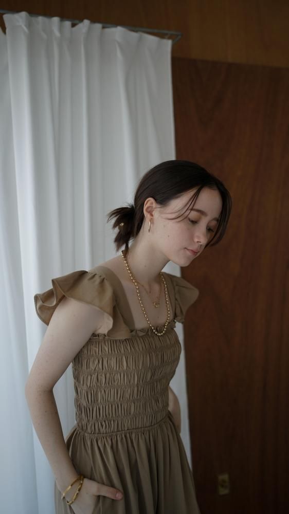 身体にフィットするように仕上げたギャザーはメリハリのあるシルエットでスタイルアップ。