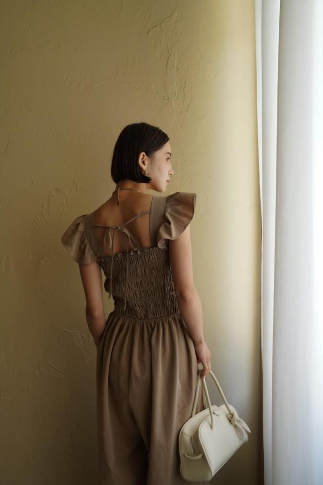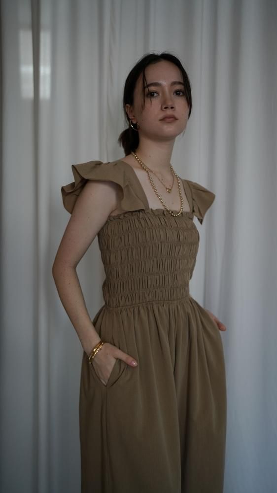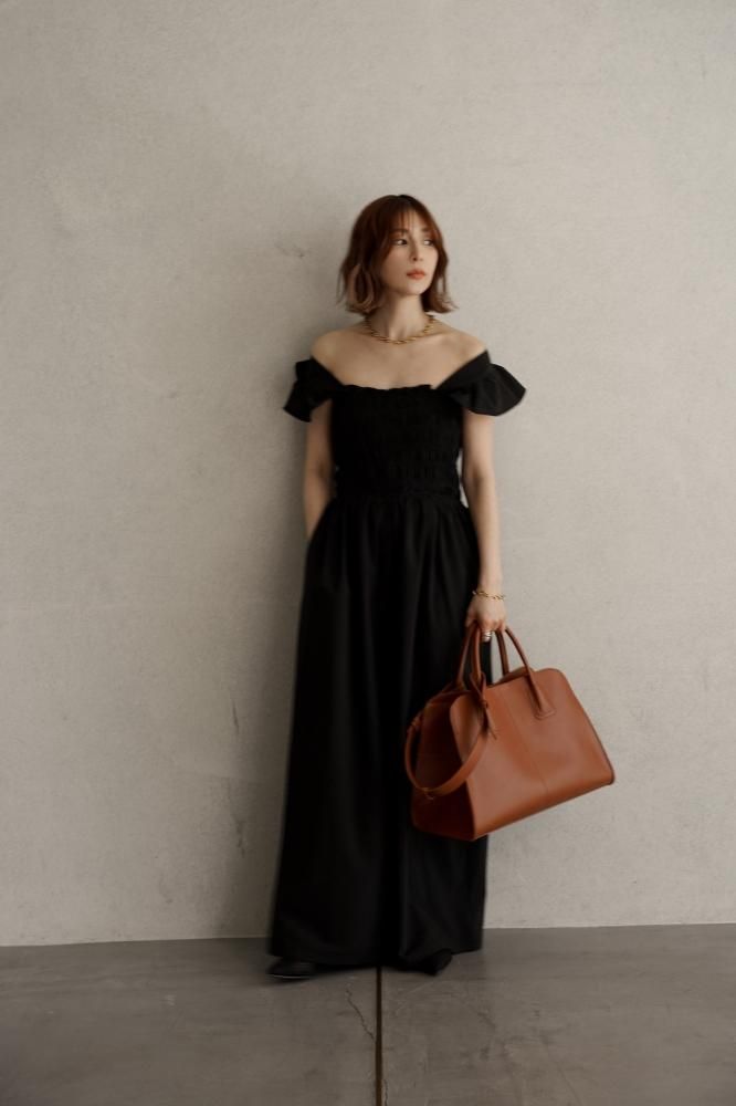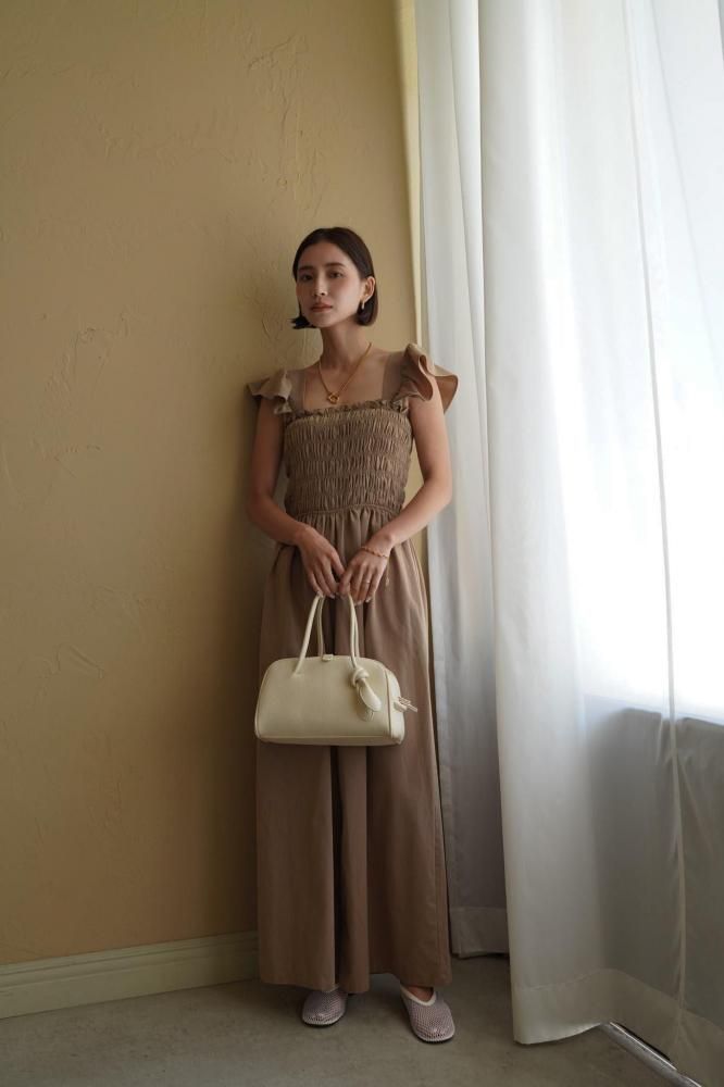 オールインワンなので気軽に着こなしが決まり、ヘルシーな肌見せで涼し気な印象を与えてくれます。