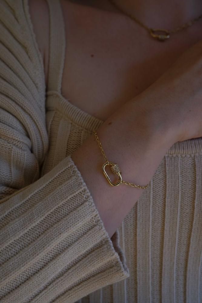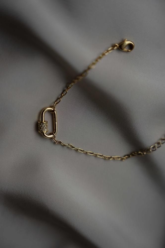 ☑キュービックジルコニアを使用したオーバルパヴェチャームのブレスレット