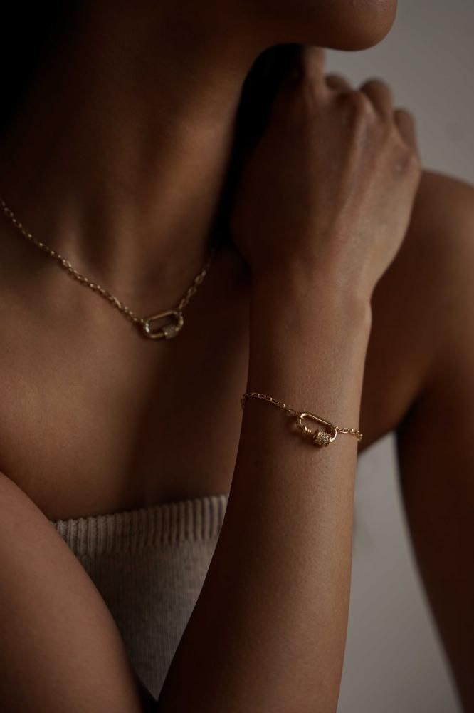 チェーンは細くしなやかな肌馴染みよく仕上げ、15cm+3cmのアジャスターが付いているので長さを調節できます。