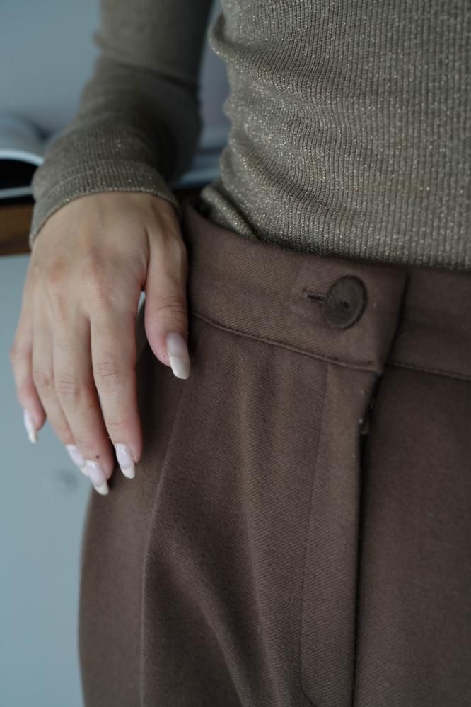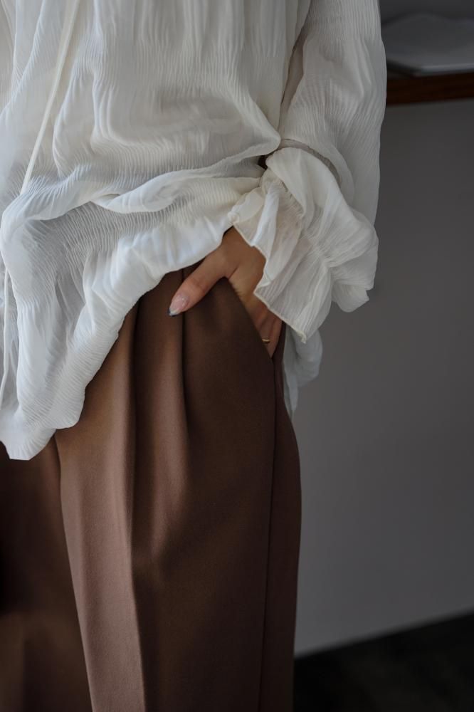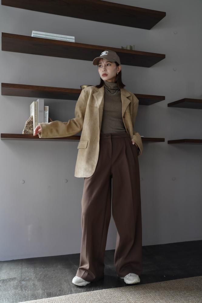 深みのあるブラウンカラーが様々なトップスにもマッチし、綺麗めから崩したカジュアルまでスタリングできます。