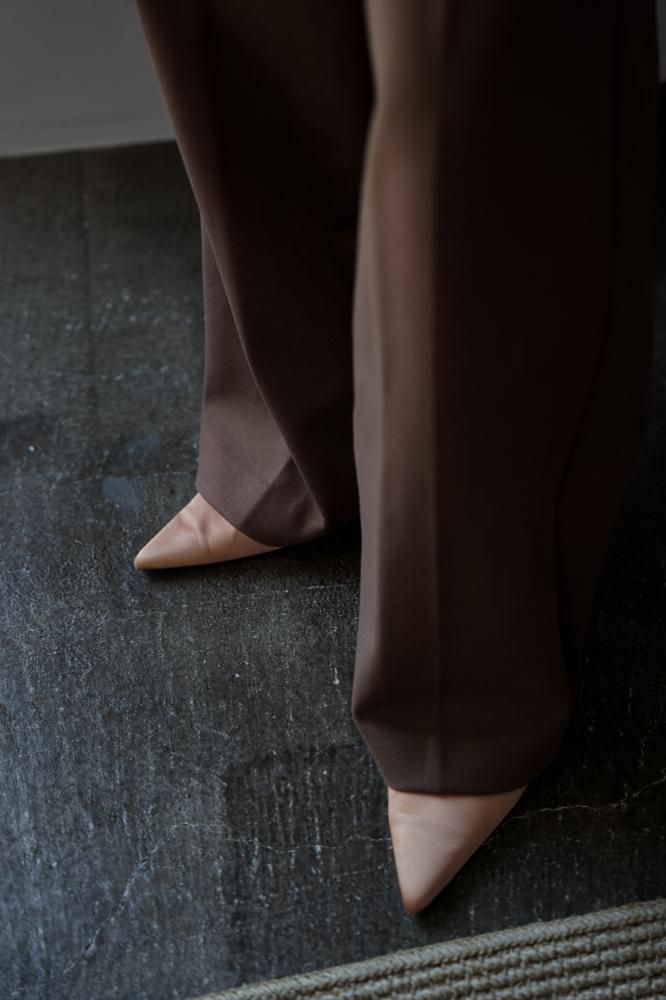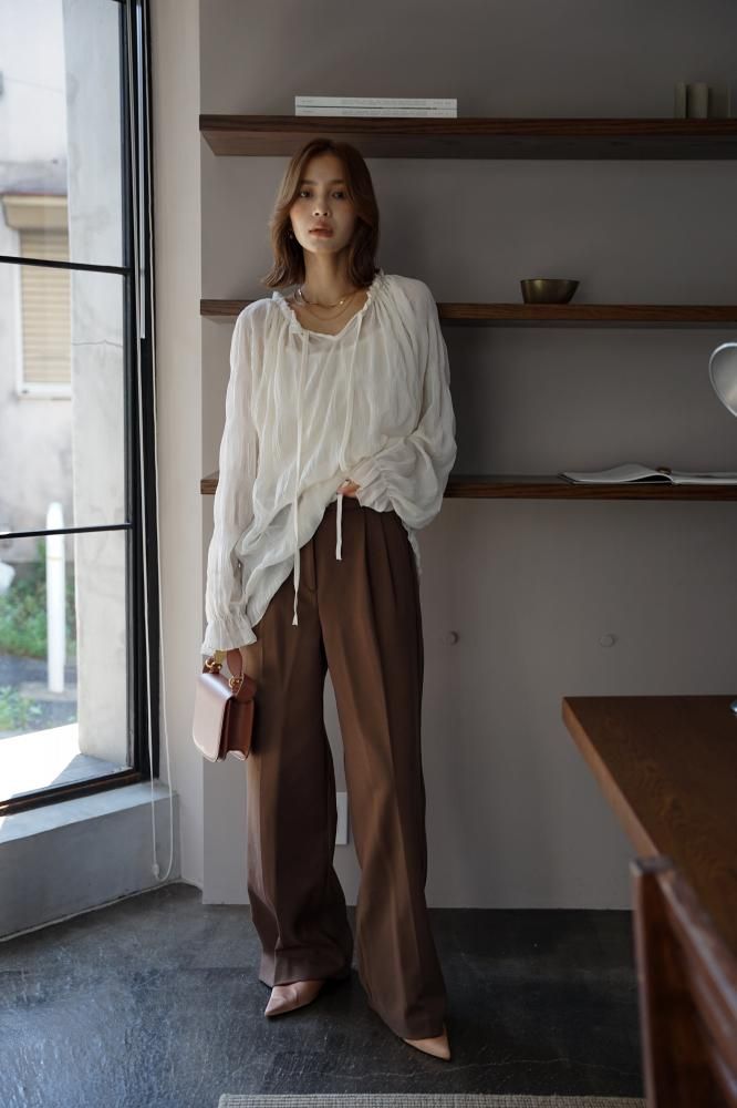 足回りではフラットシューズやヒールとの組み合わせもバランスの良いルックを演出できます。