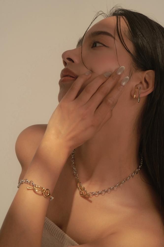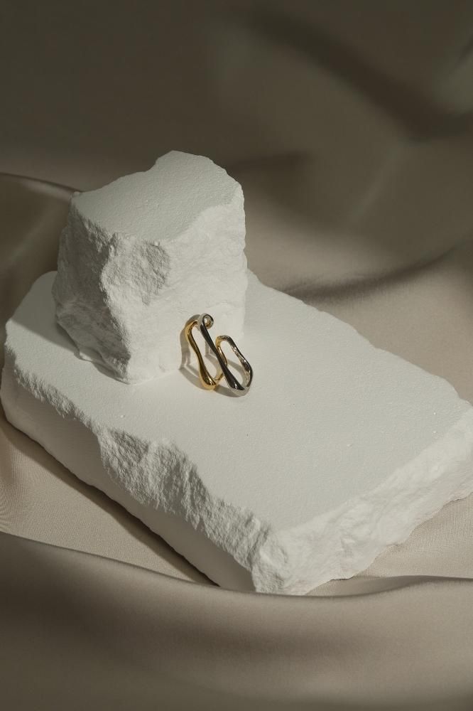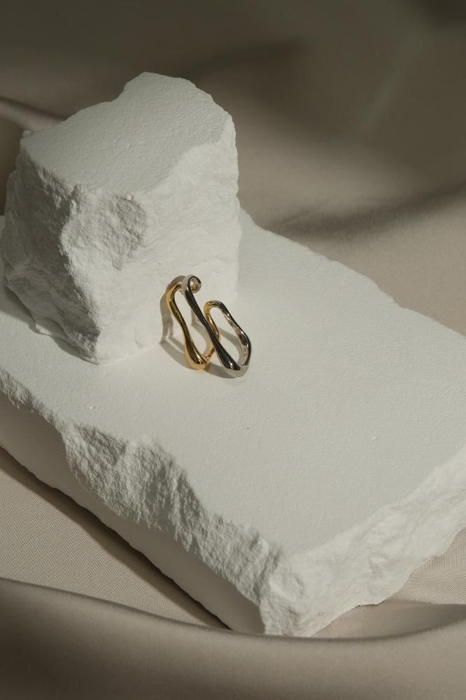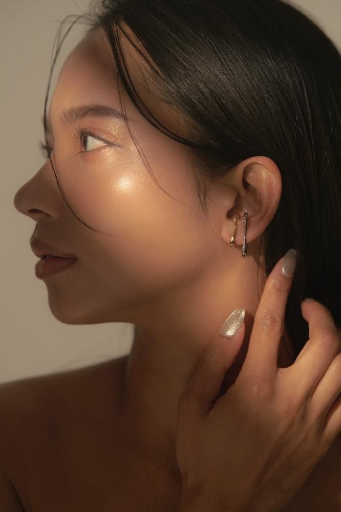 ゴールドの温かみのある輝きとシルバーの洗練された光沢が融合し、耳元で繊細な印象を放ちます。