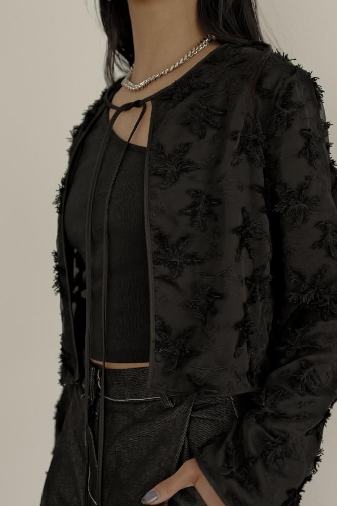 ☑花柄の刺繍を施した上品な女性らしさのあるカーディガン