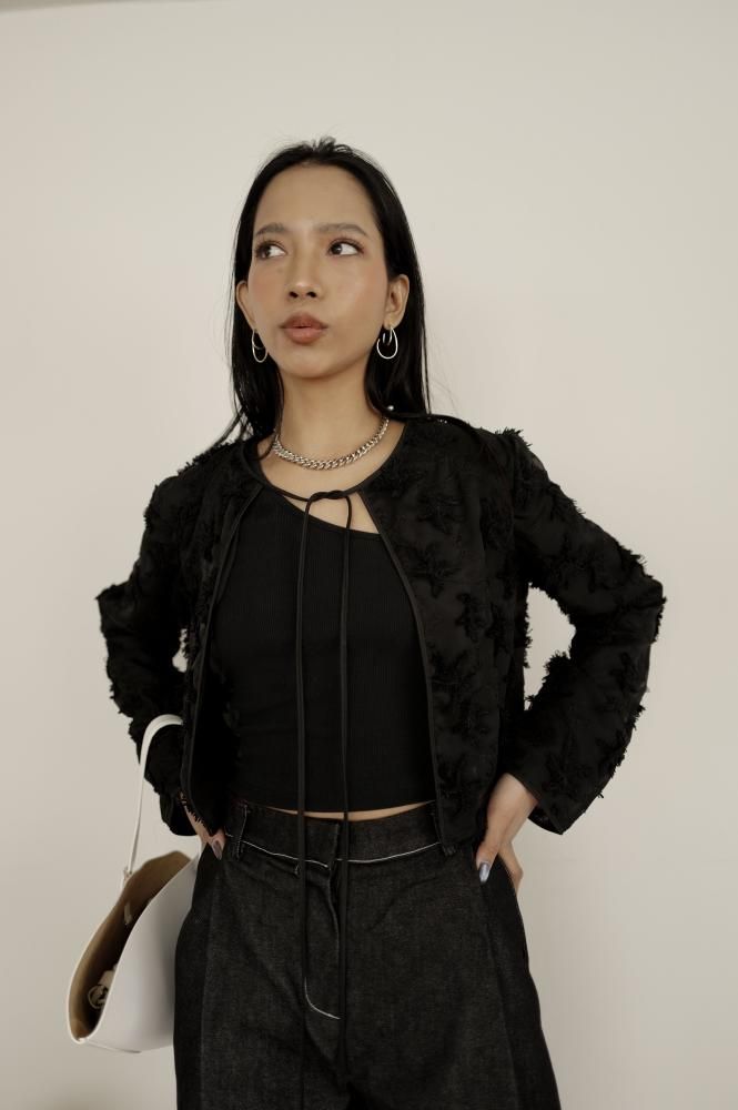 ブラックカーディガンは、洗練されたクールな魅力を持ち、よりフォーマルな装いや夜のお出かけにも最適。