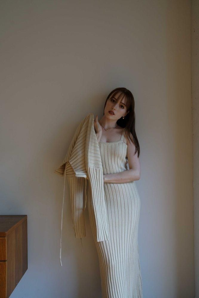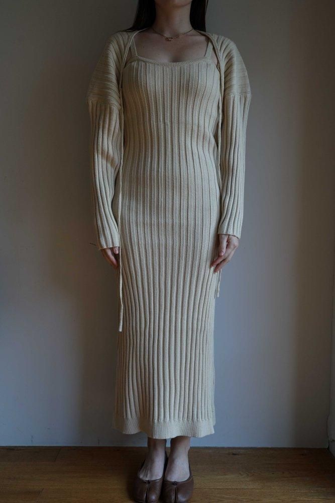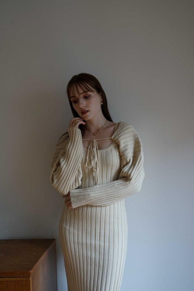 こなれ感を演出するリブボレロとワンピースのセット。