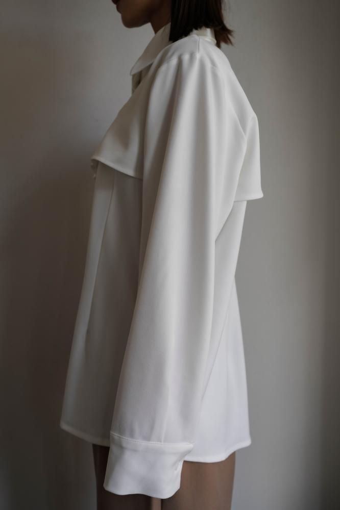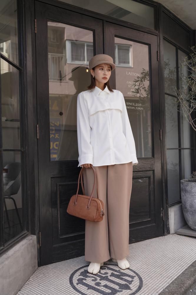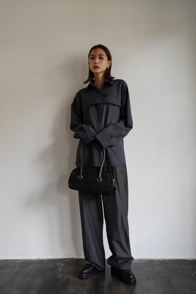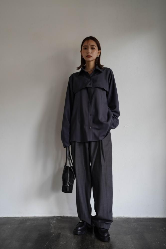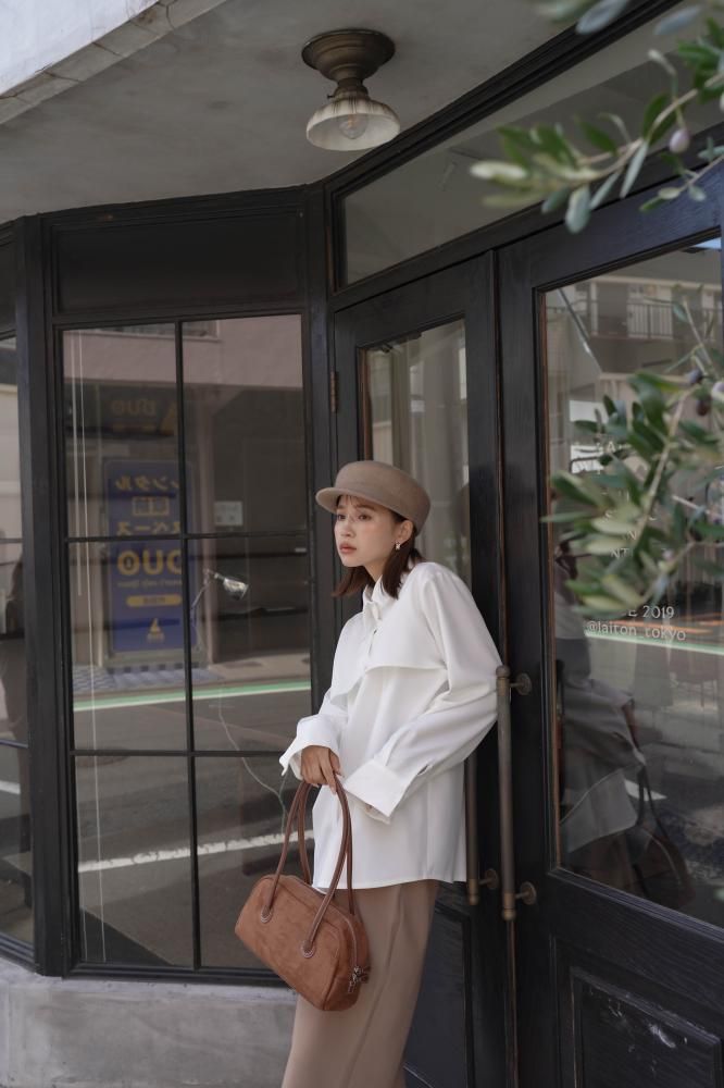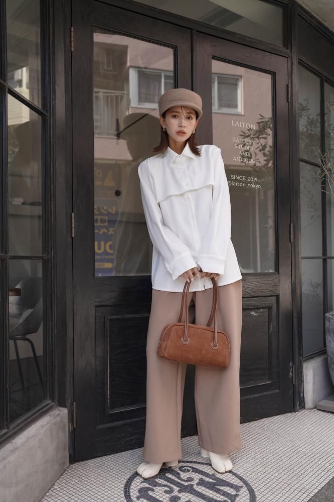 シャツは特徴的な丈の長さによりレイヤードシルエットの立体感を作り、サマ見えする上品な印象を与えてくれます。