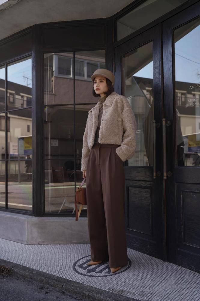 ショート丈で軽やかな印象を与えつつ、コーディネートに程よいボリューム感をプラス。