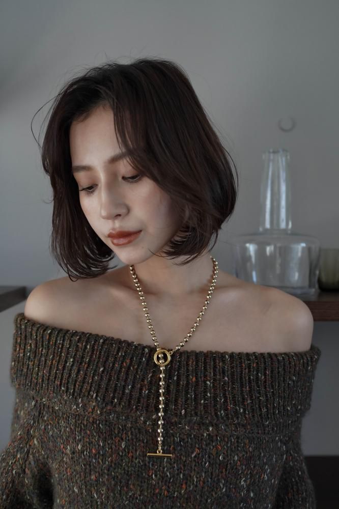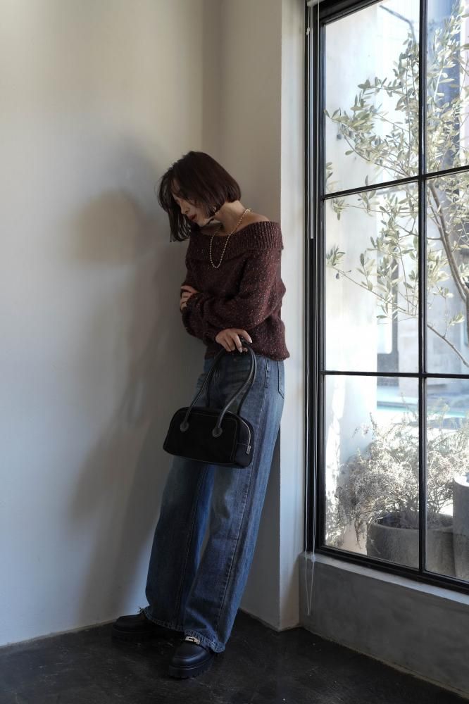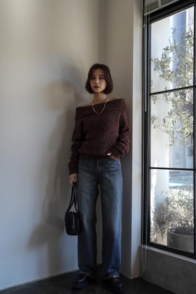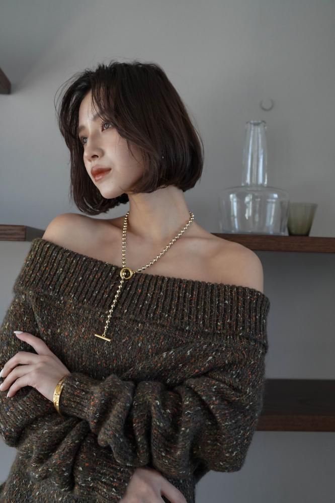 オフショルダーのデザインが肩元をさりげなく美しく見せ、程よい肌見せで女性らしいエレガントな印象をプラス。