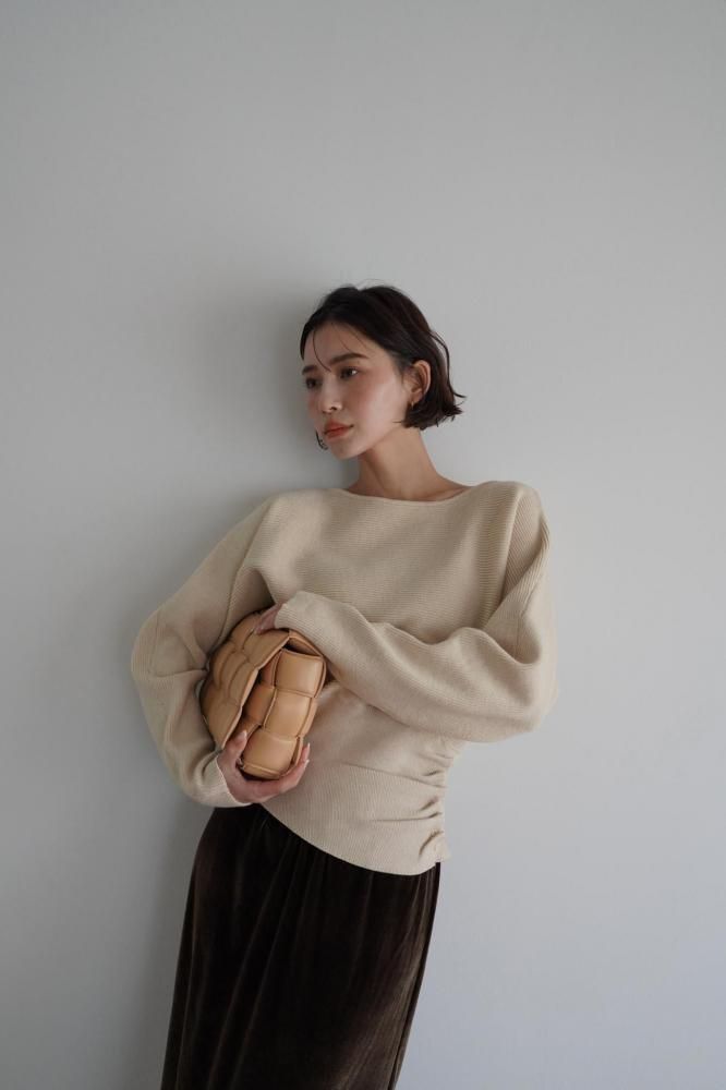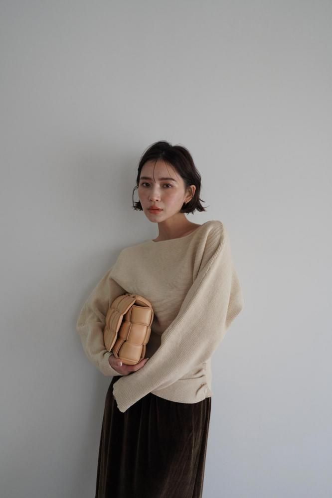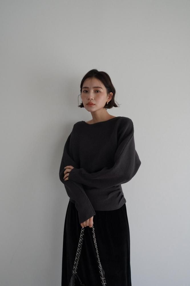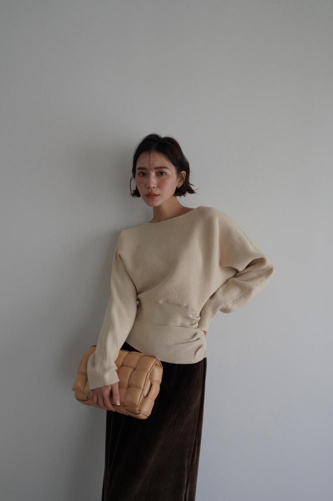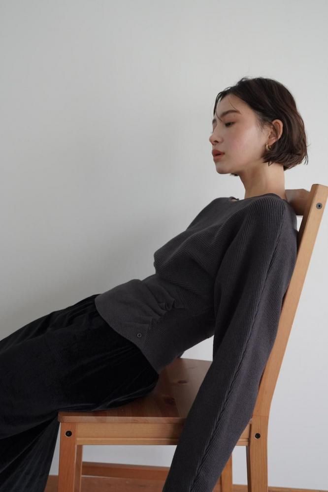 ドレープ感のある編み地が柔らかく自然なシルエットを作り、全体のデザインに高級感をプラス。