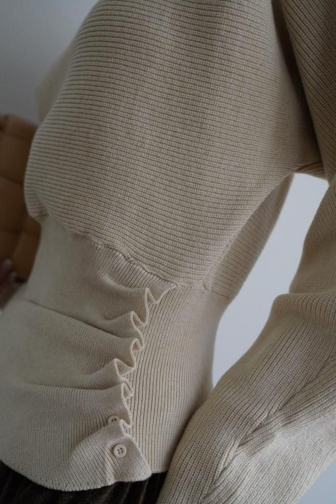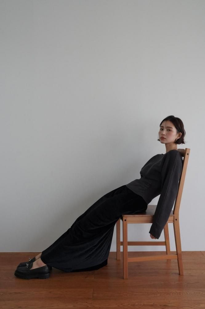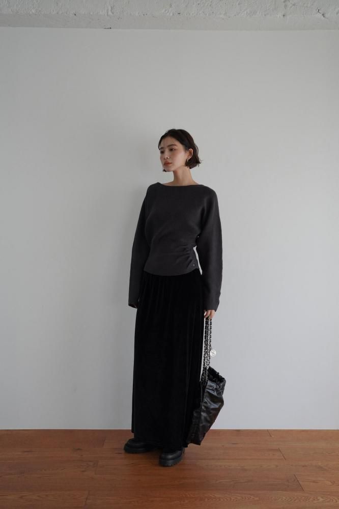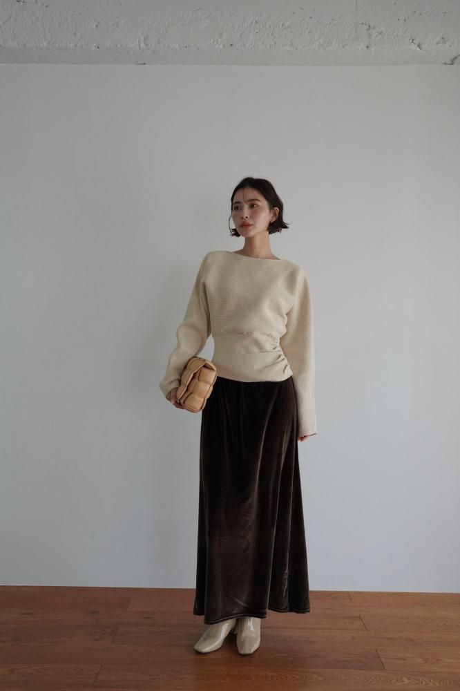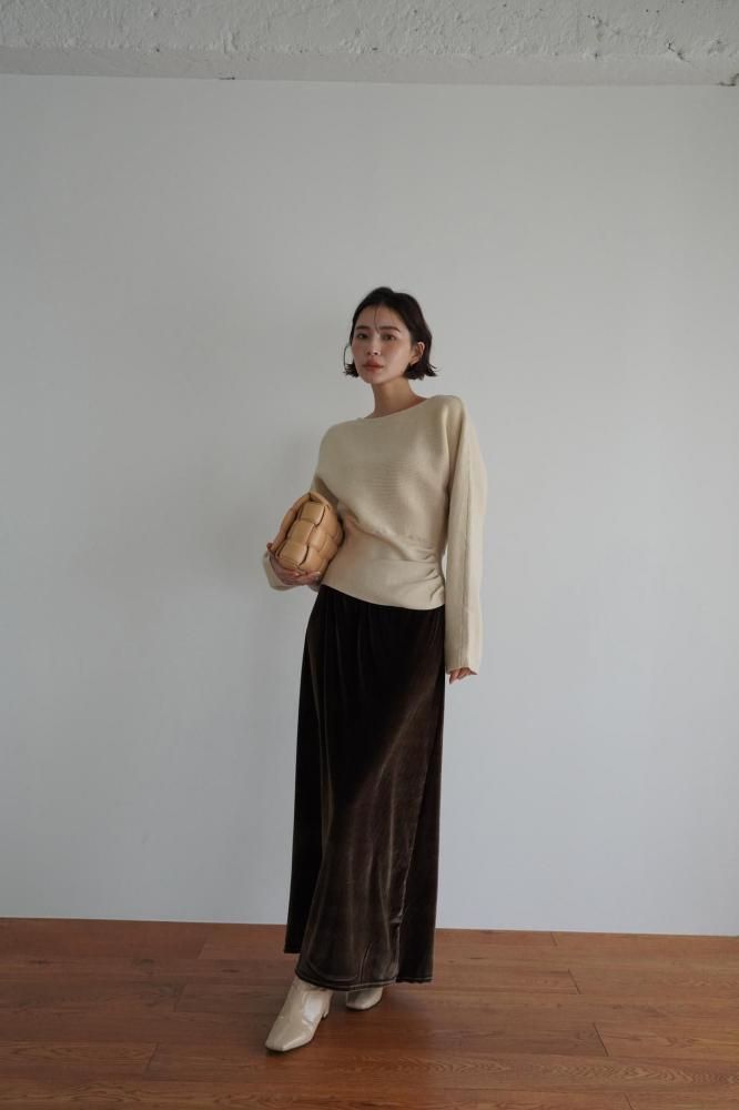 ドレープ感のある編み地が柔らかく自然なシルエットを作り、全体のデザインに高級感をプラス。