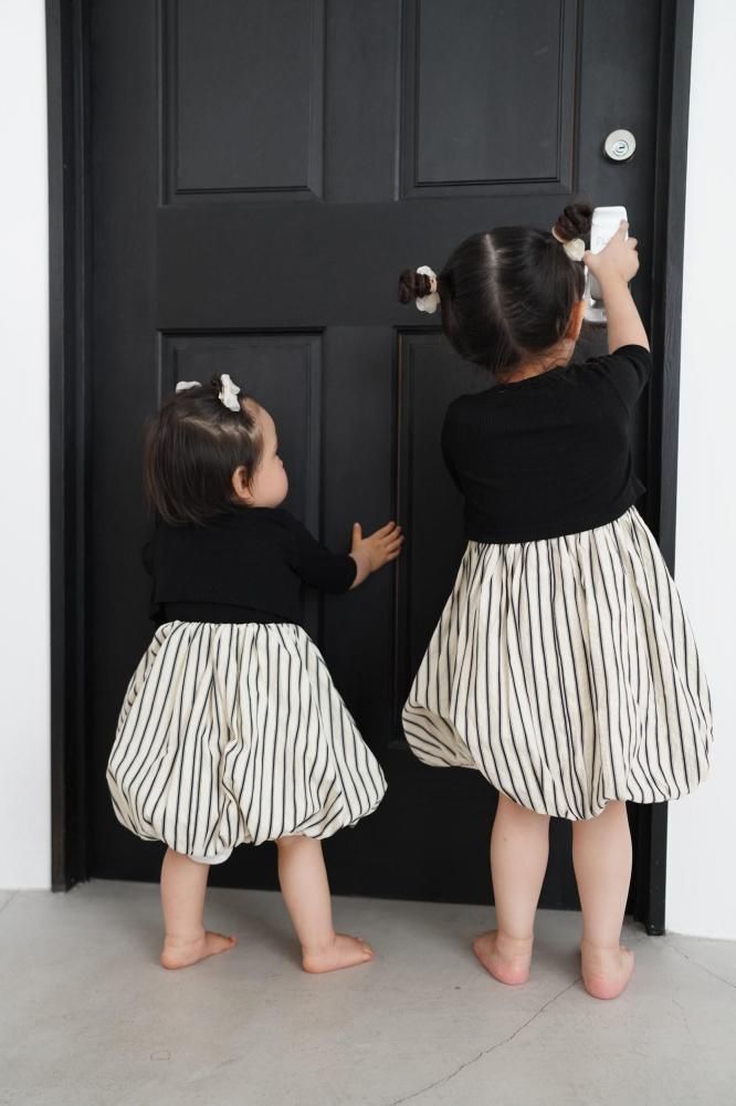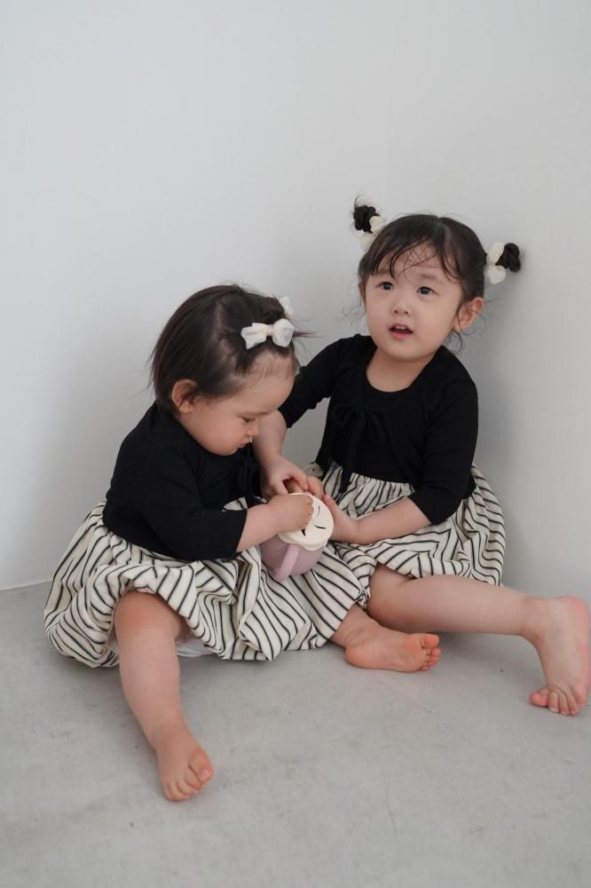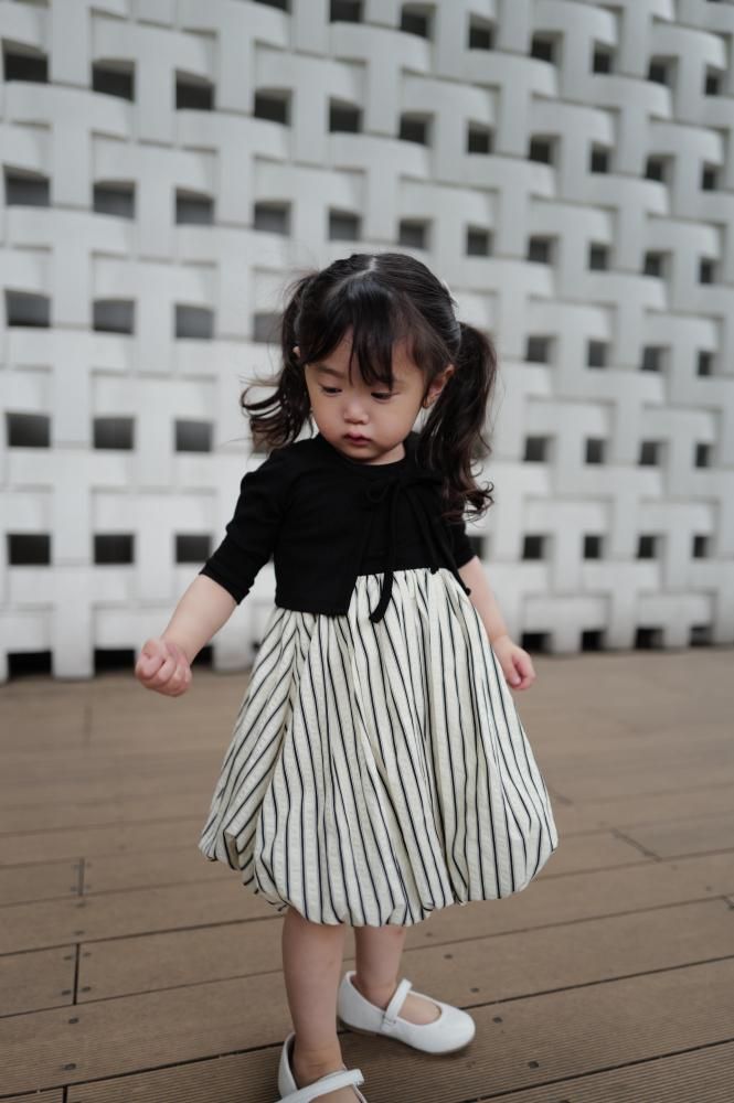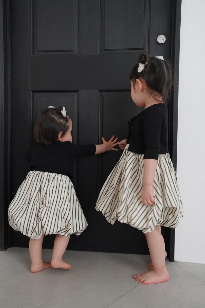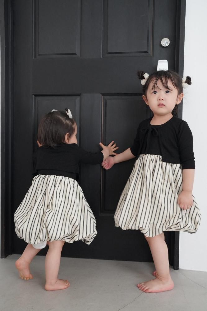 バルーンスカートデザインのワンピースとカーディガンセット。