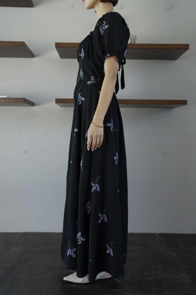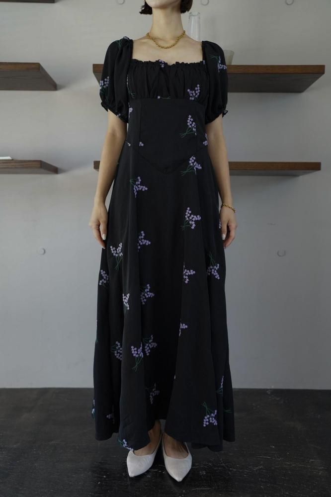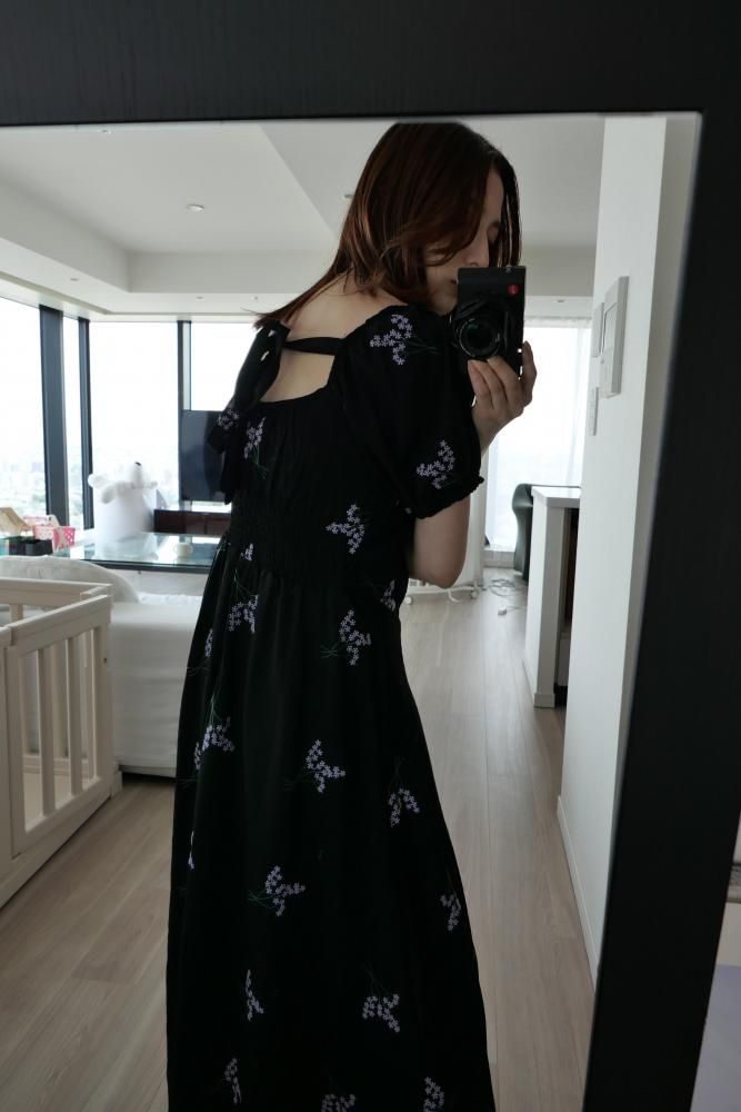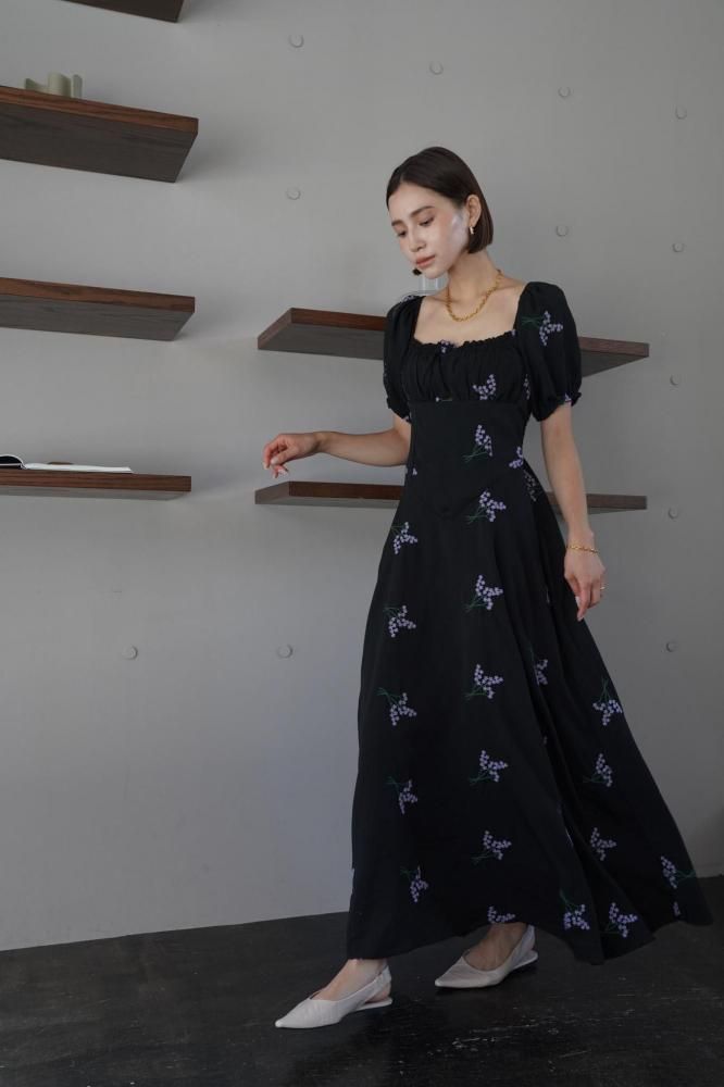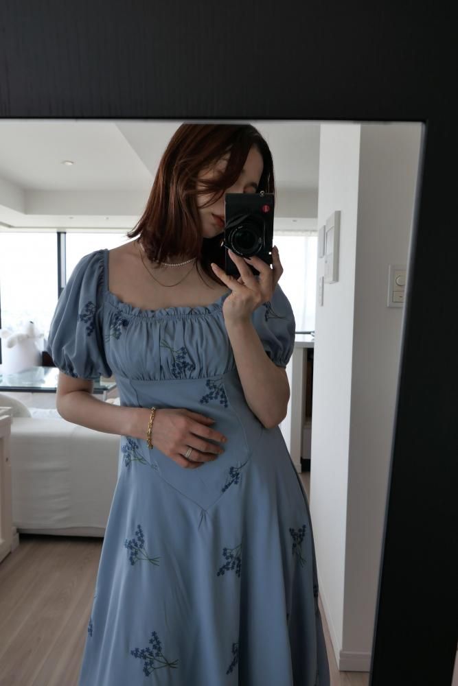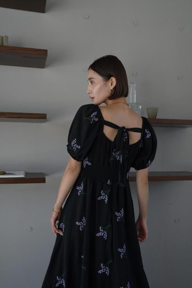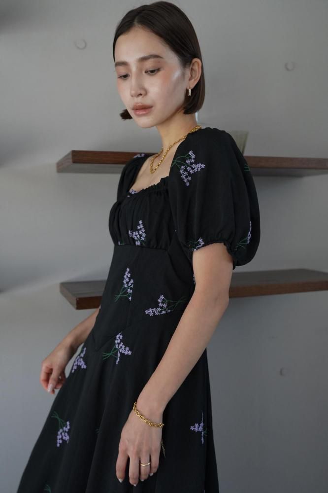 繊細なフラワー刺繍が上品な印象を演出し、ウエストラインを美しく見せる切り替えデザインがスタイルアップ効果も◎