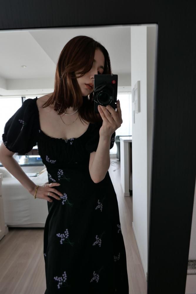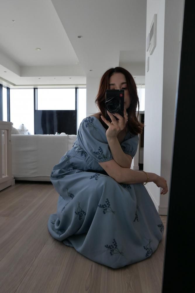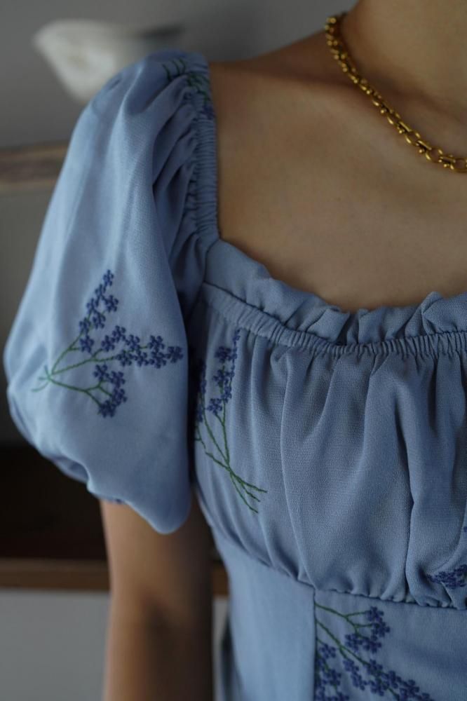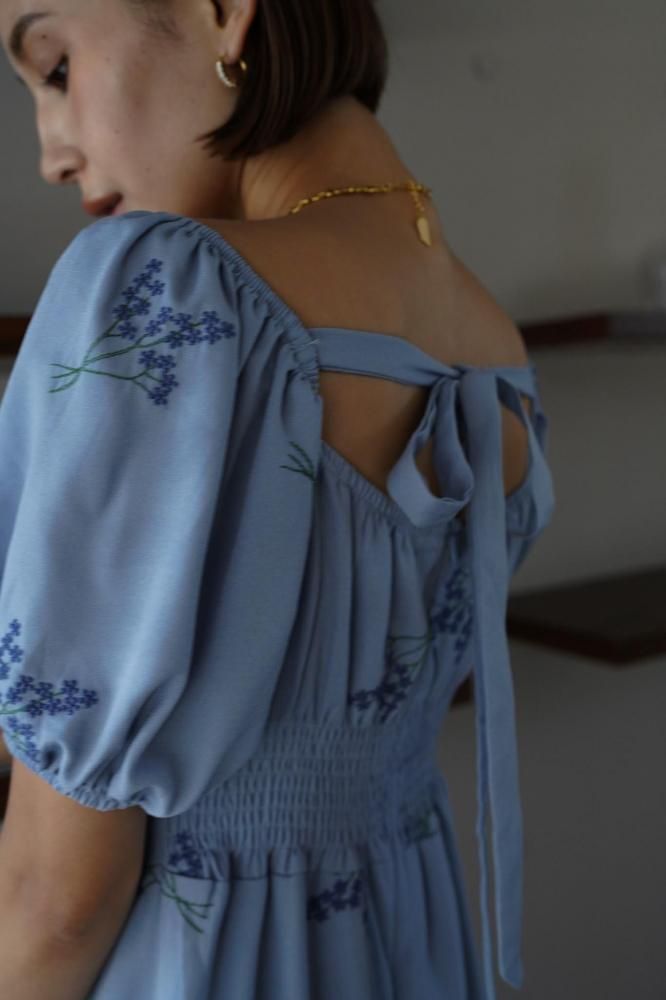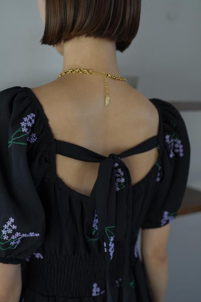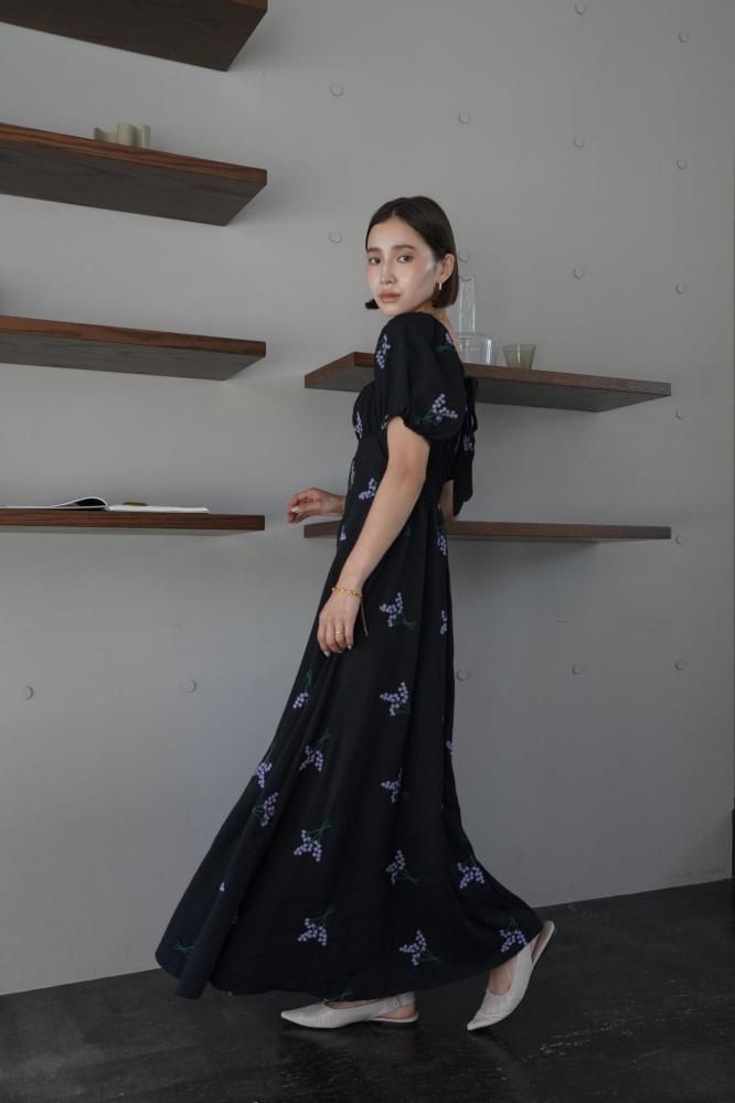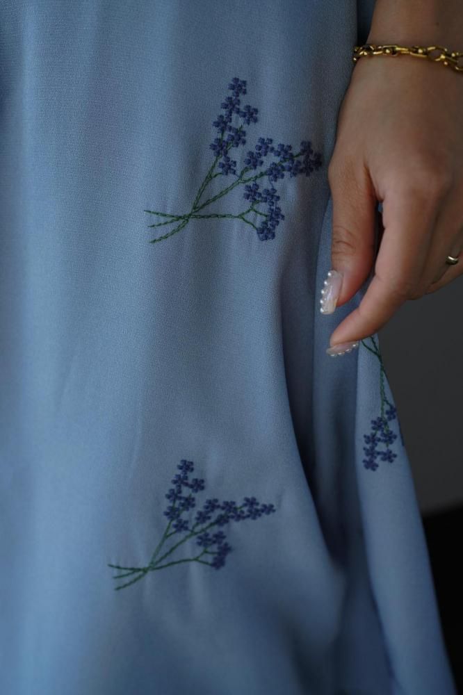 繊細なフラワー刺繍が上品な印象を演出し、ウエストラインを美しく見せる切り替えデザインがスタイルアップ効果も◎
