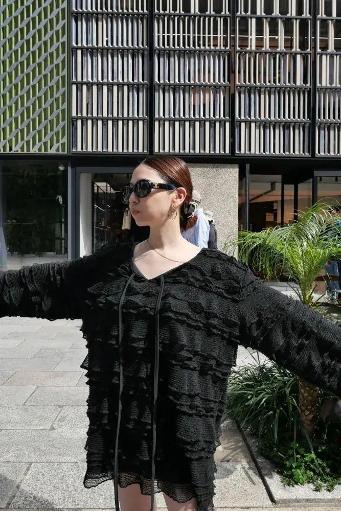 全体に施されたフリルディテールで華やかさのあるデザイン。