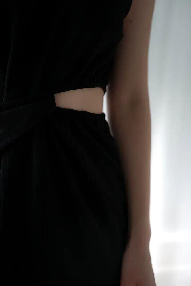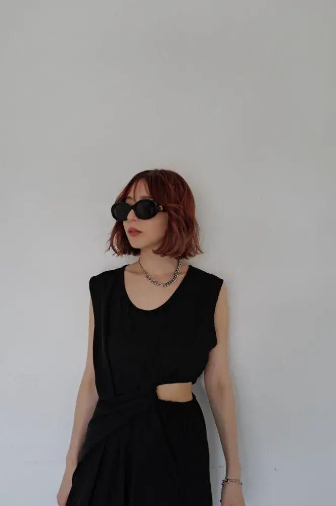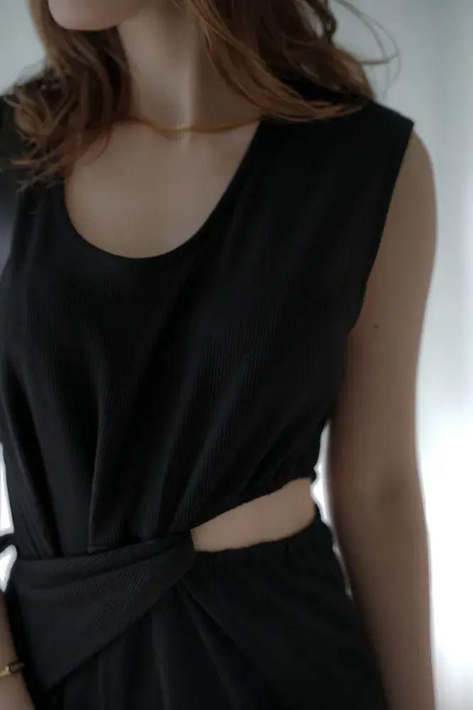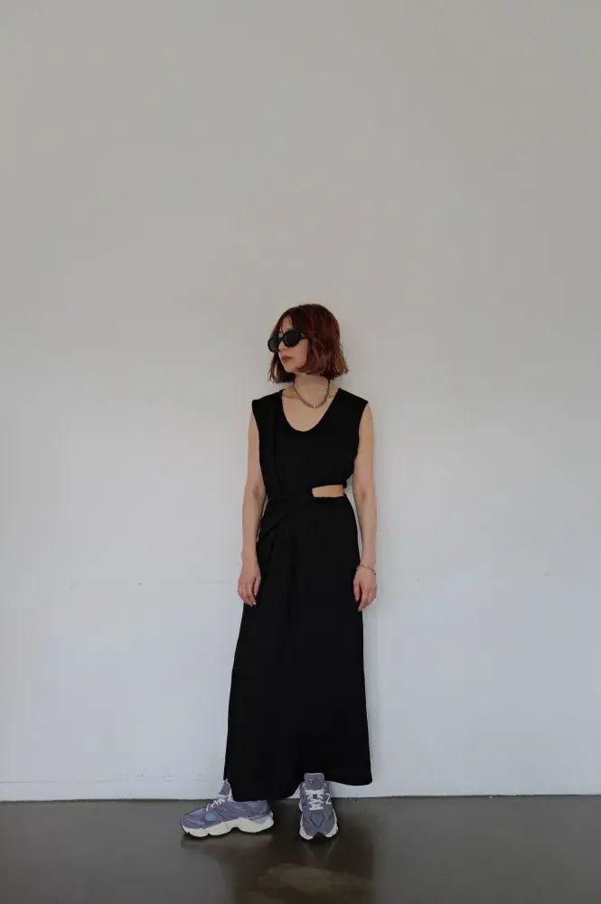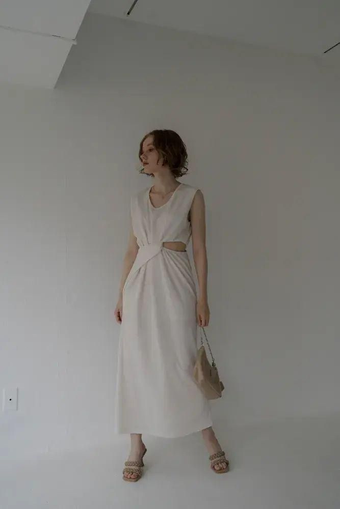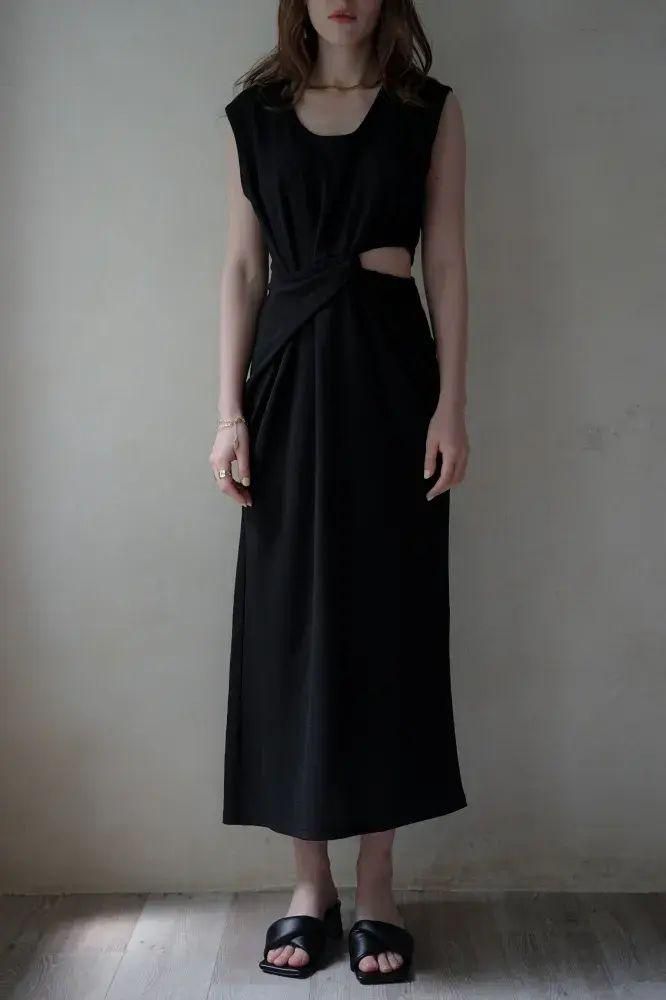 ☑トレンドのカットアウトデザインのノースリーブワンピース