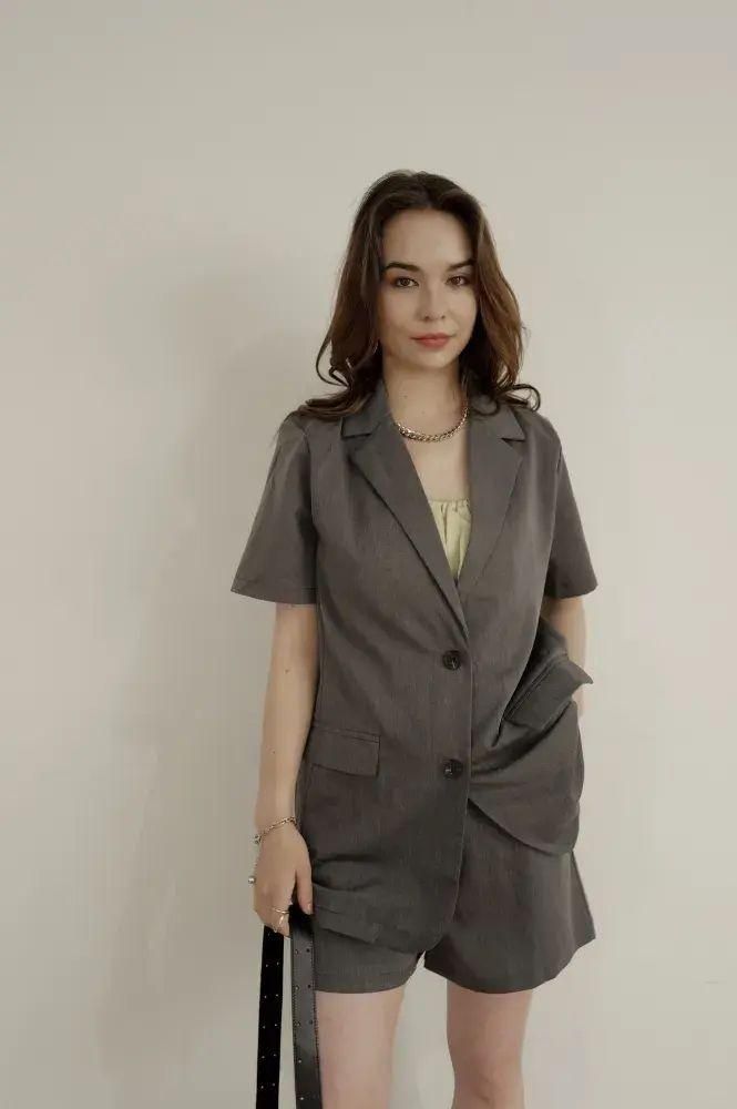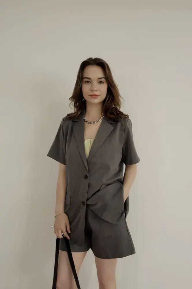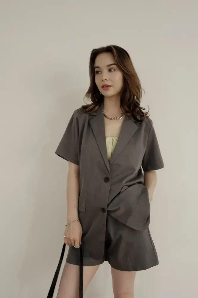 半袖のベーシックスーツジャケット・ショートパンツのセットアップ