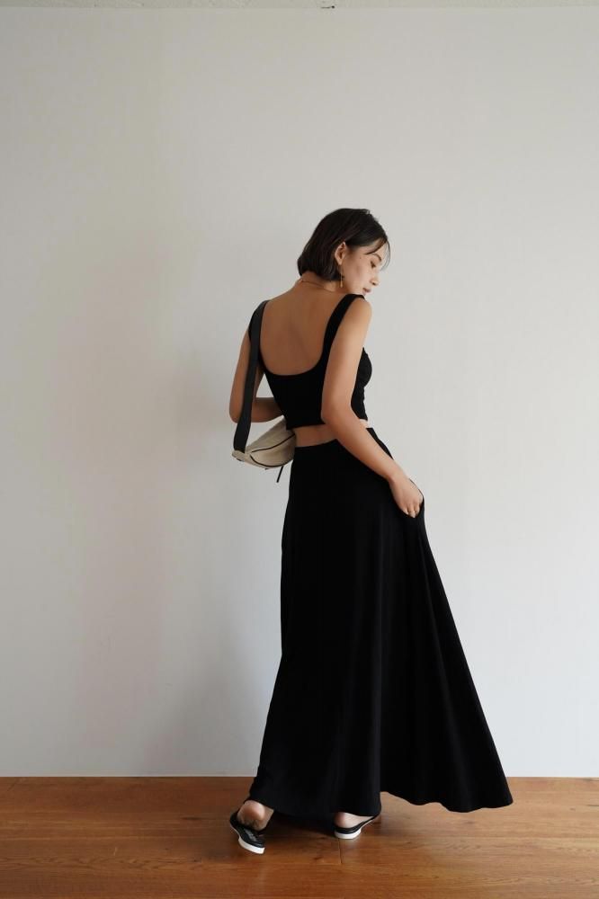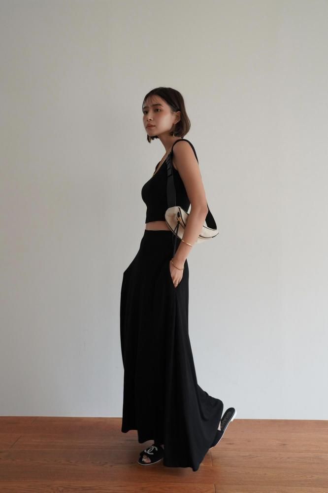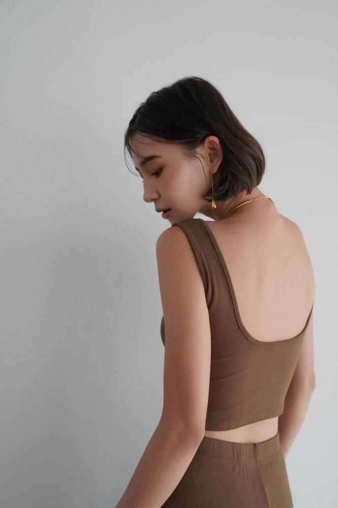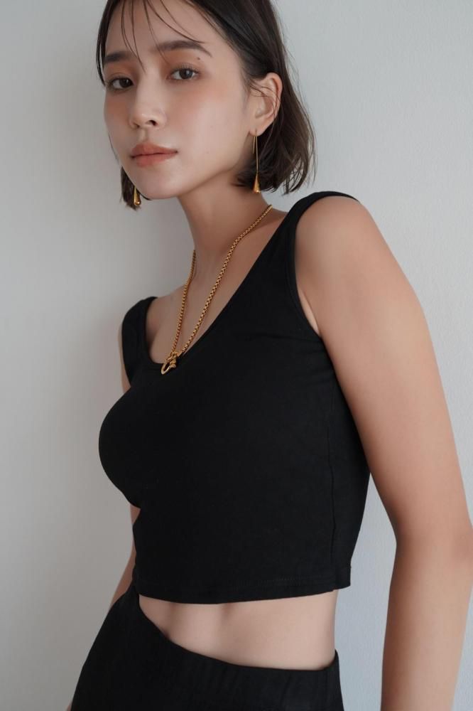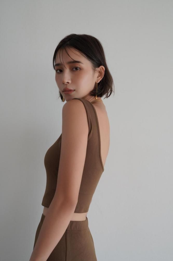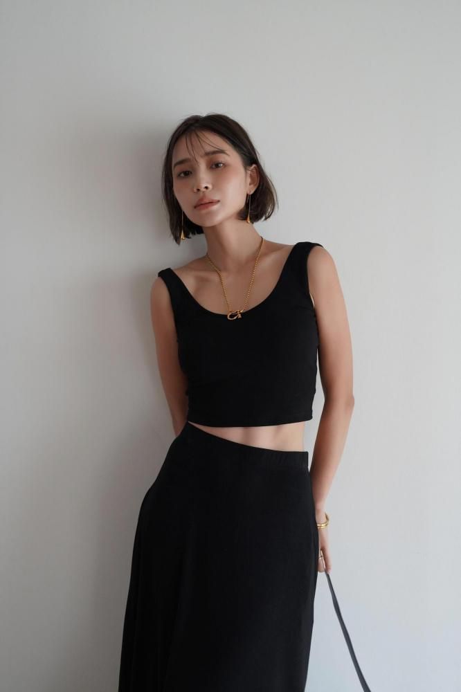 デコルテを美しく見せる絶妙なスクエアネックと、短すぎないクロップド丈が好バランスで、スタイルアップも叶います。