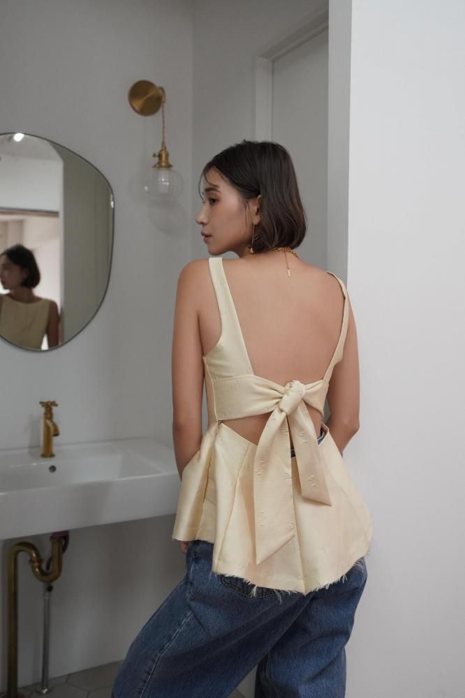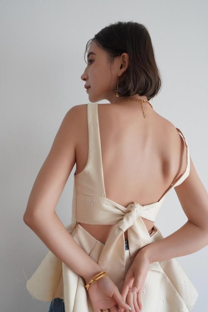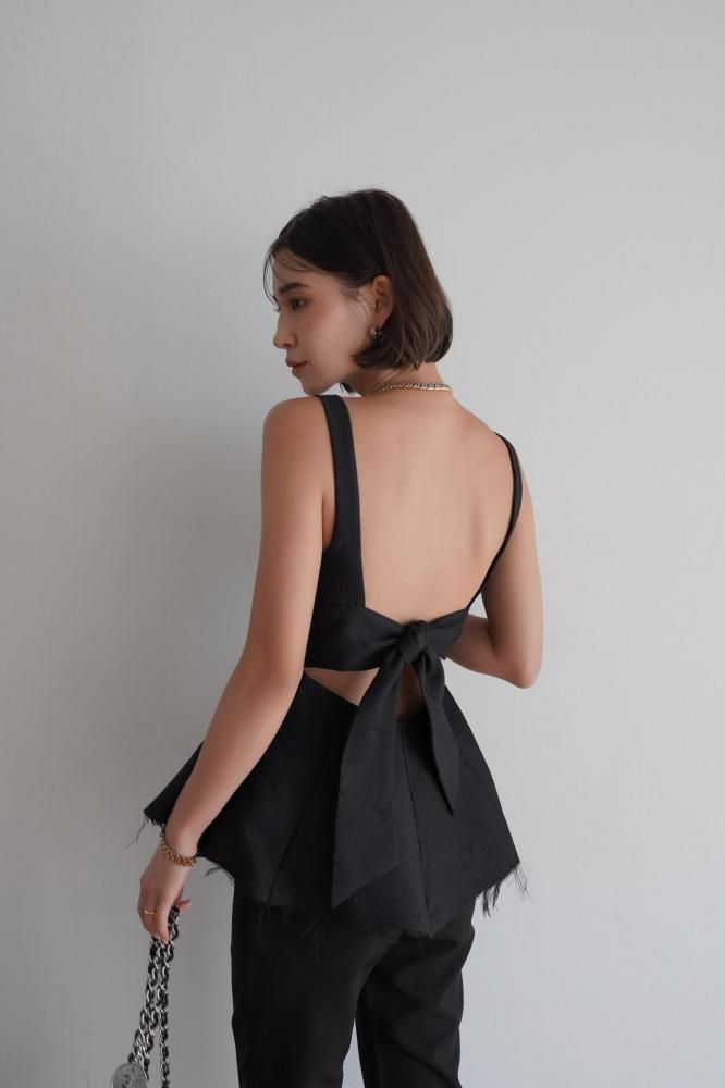 背中にはリボンディテールがあしらわれており、後ろ姿まで抜かりなく可愛いポイント。