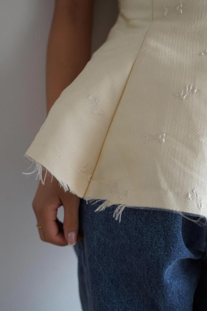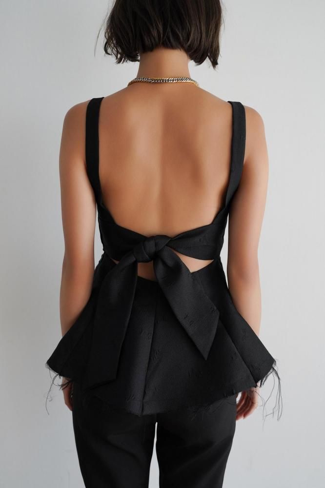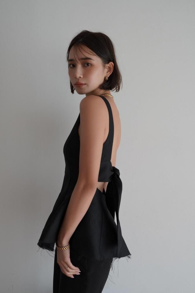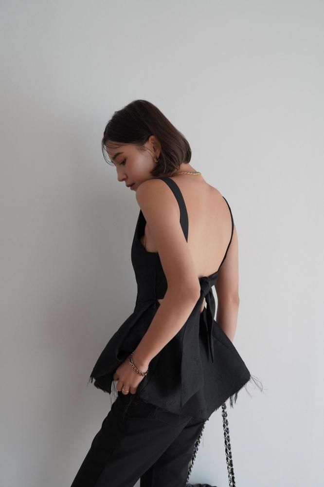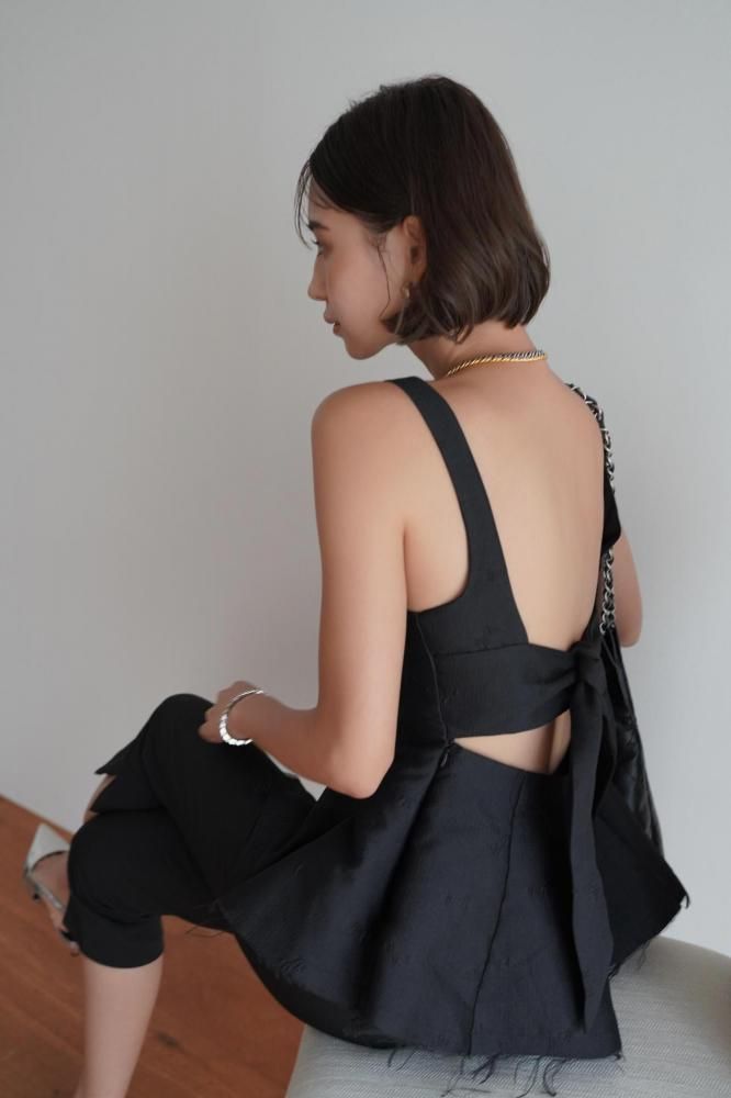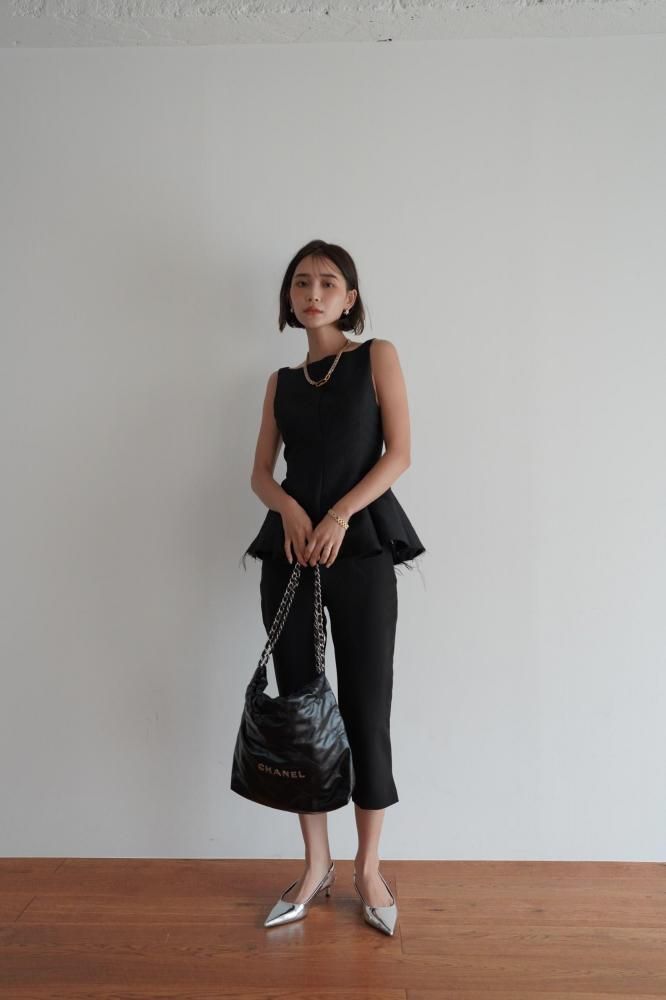 立体感のあるシルエットが美しい、ペプラムデザインのノースリーブトップス。