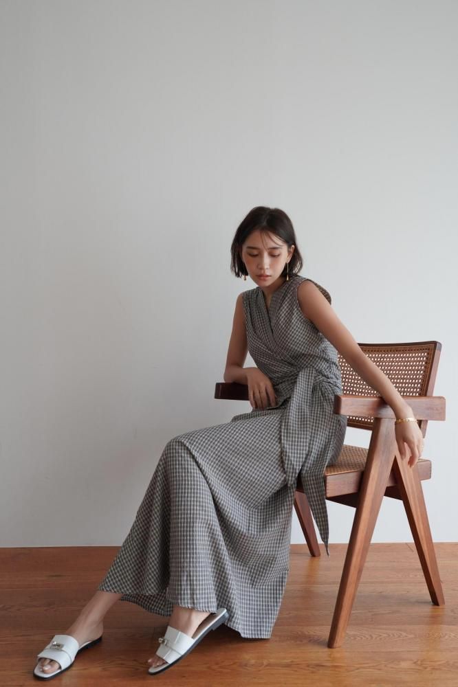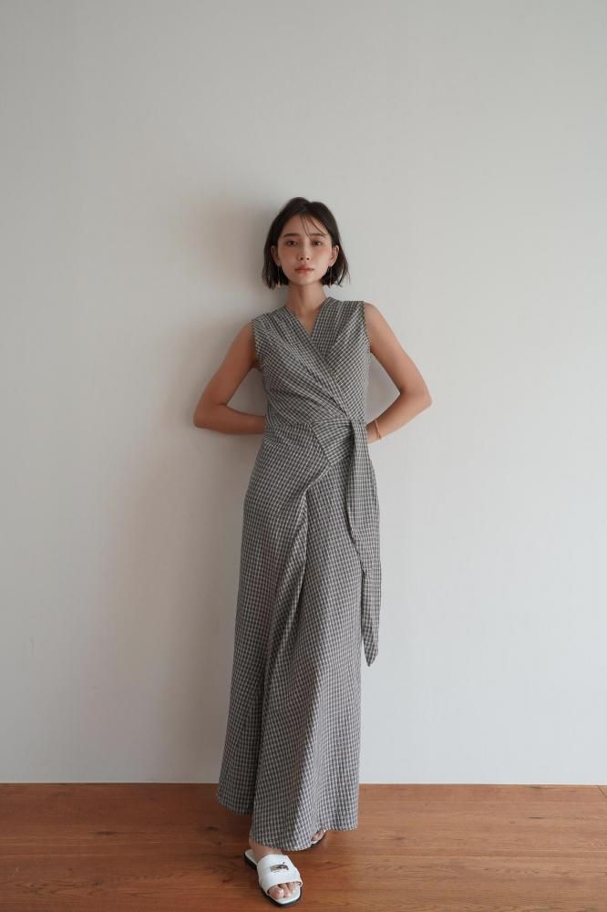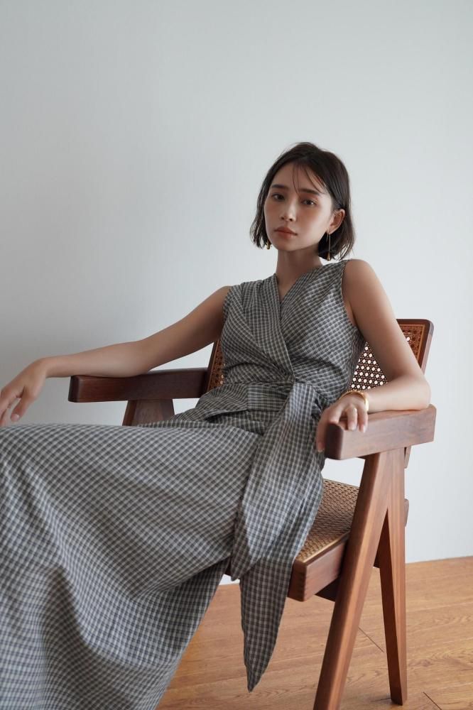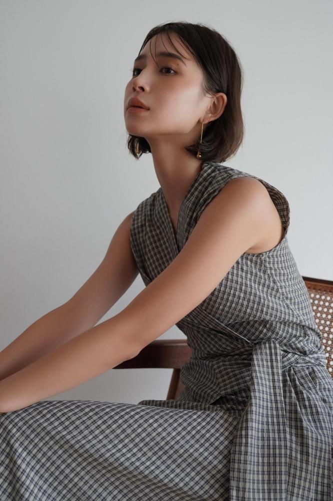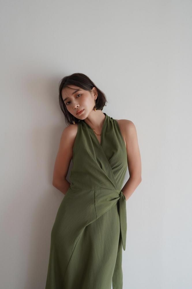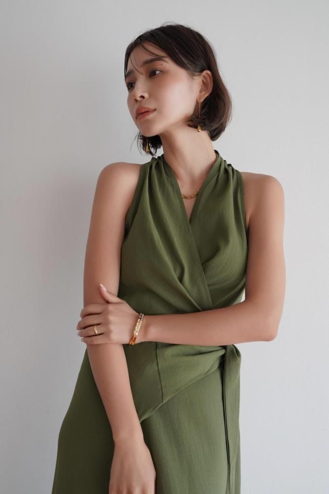 ナチュラルな雰囲気とモード感を兼ね備えた、女性らしさが際立つカシュクールワンピース。
