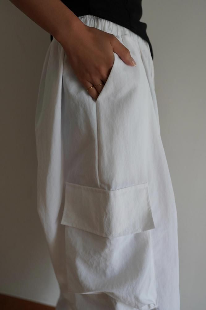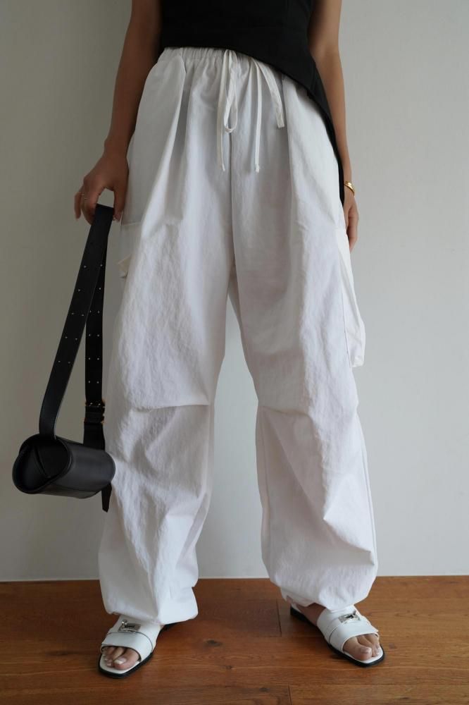 軽やかでシャリ感のあるナイロン素材が、ボリュームのあるシルエットに立体感をプラスし、動きに合わせて美しいドレープを演出します。