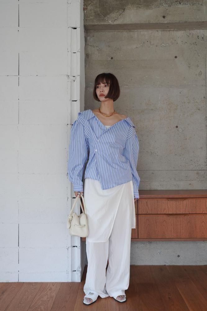 ウエストラインを自然に引き締めるツイスト風のシルエット。