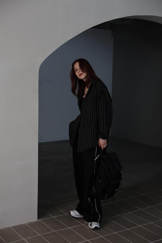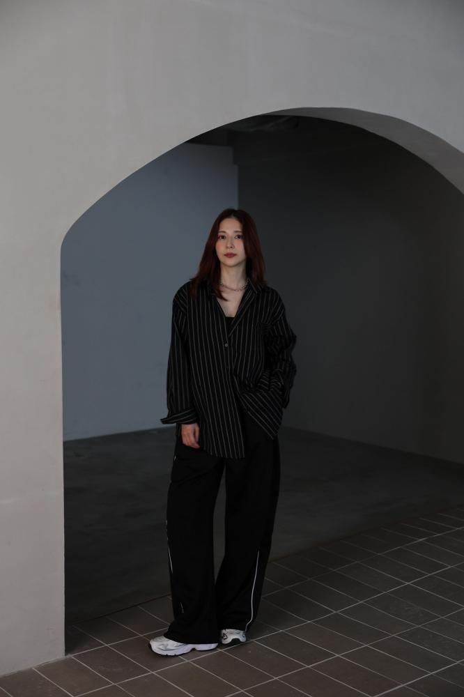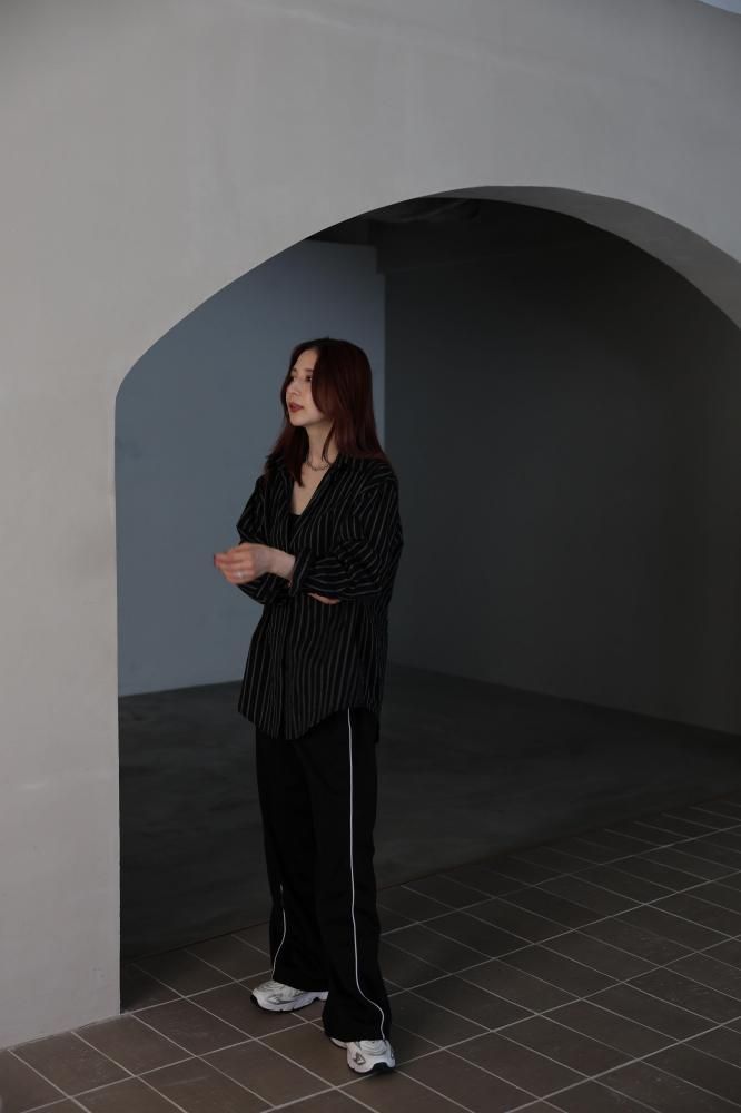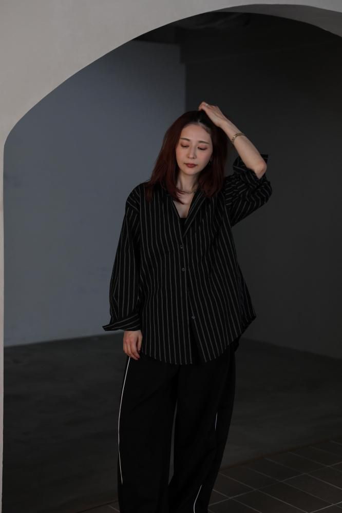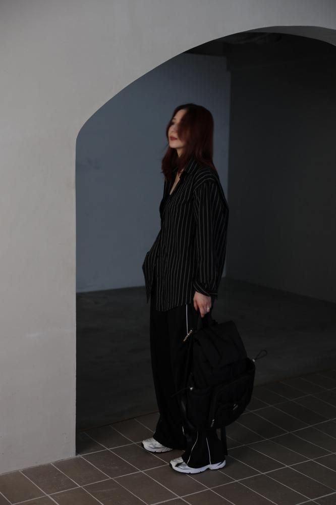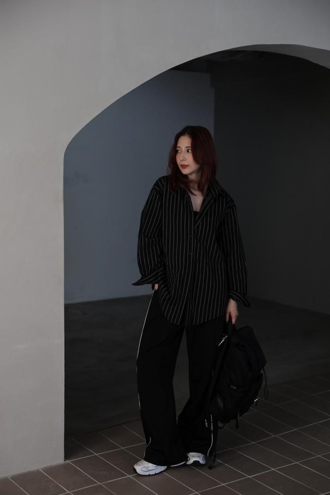 細めのストライプ柄が縦のラインを強調し、すっきりとした印象に仕上げてくれます。