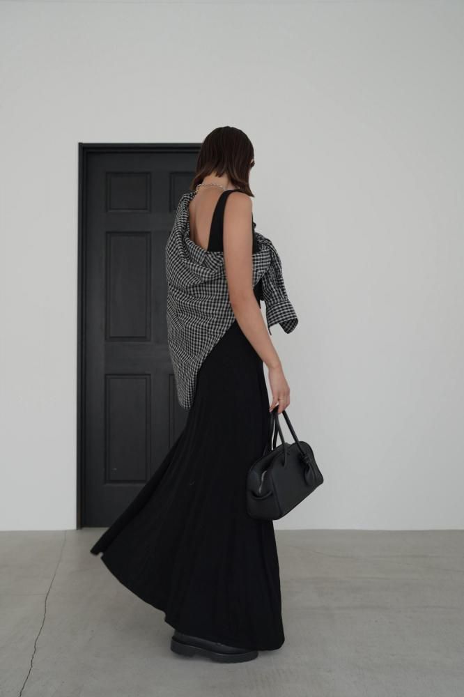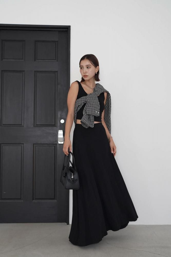サイドにスリット入りで抜け感もあり、動くたびに自然なドレープが生まれます。