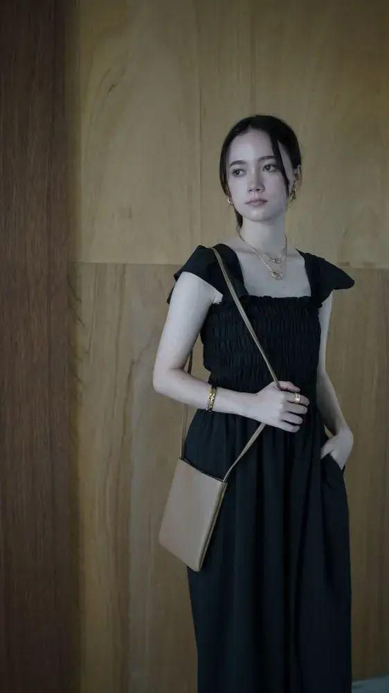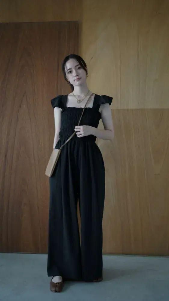 オールインワンなので気軽に着こなしが決まり、ヘルシーな肌見せで涼し気な印象を与えてくれます。