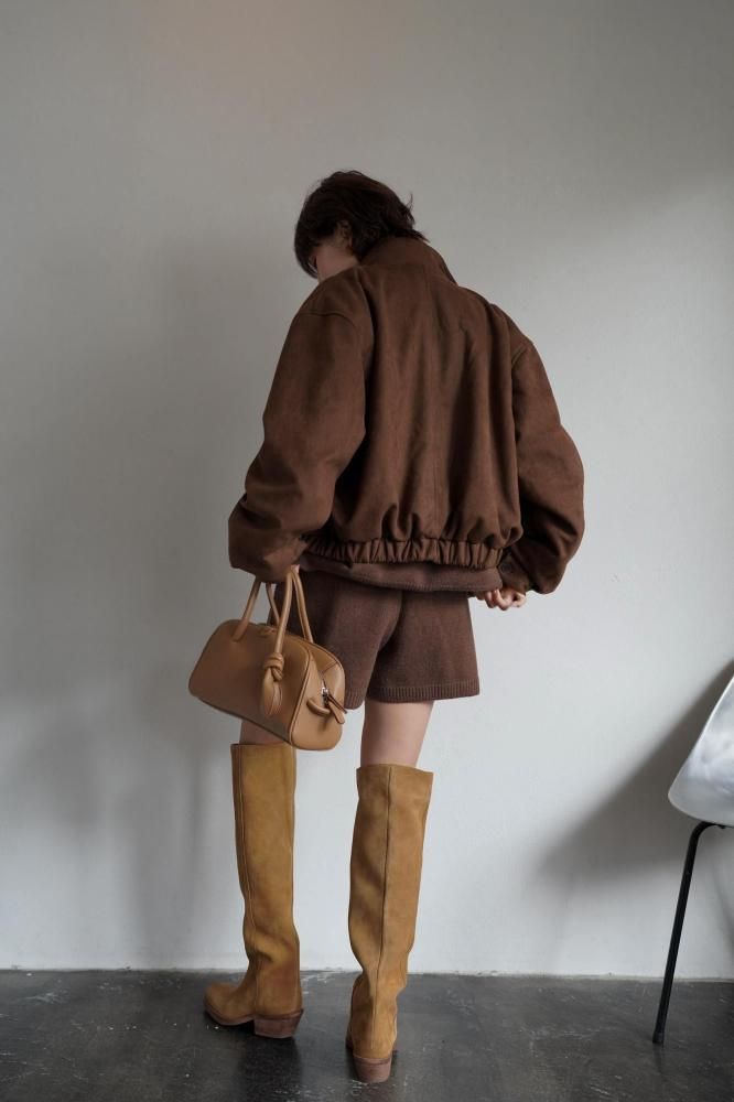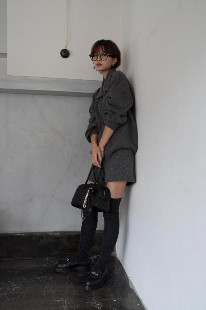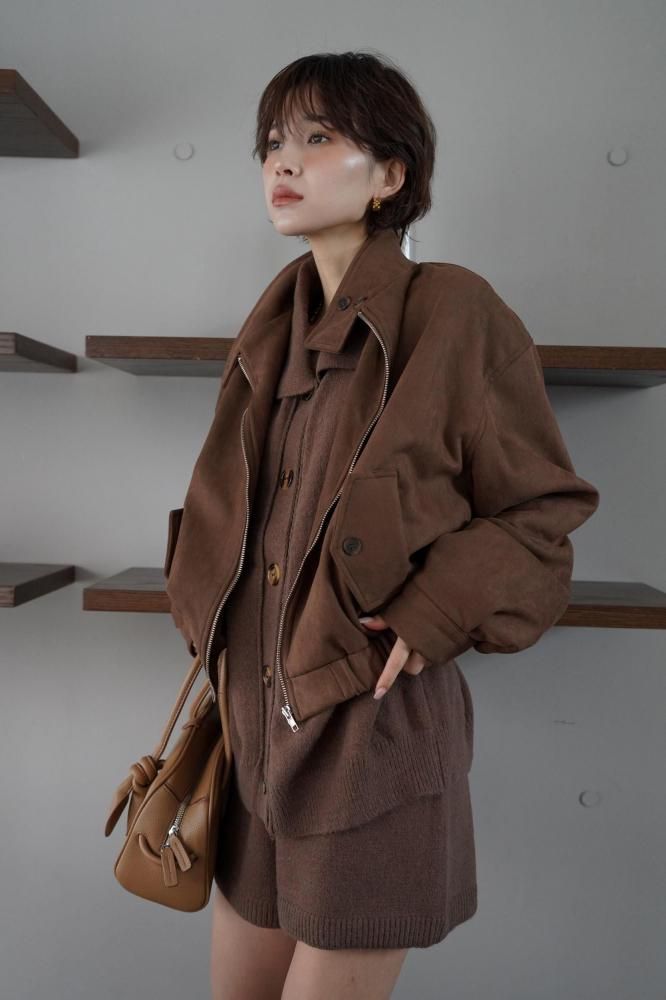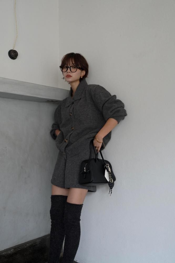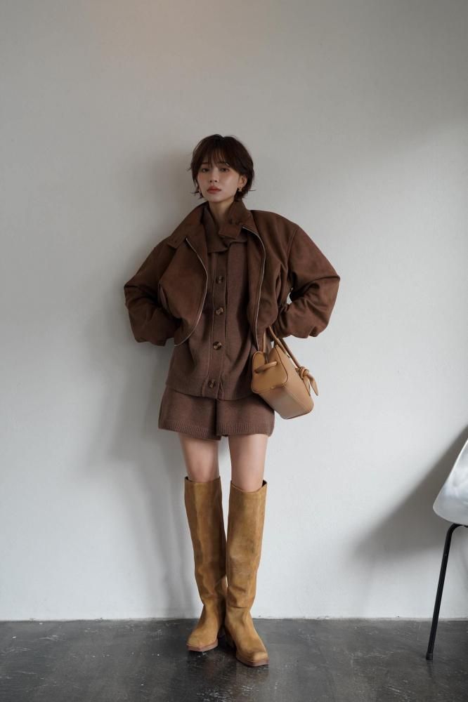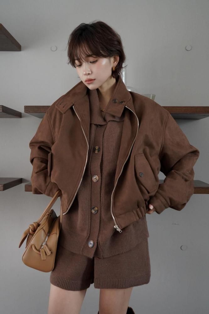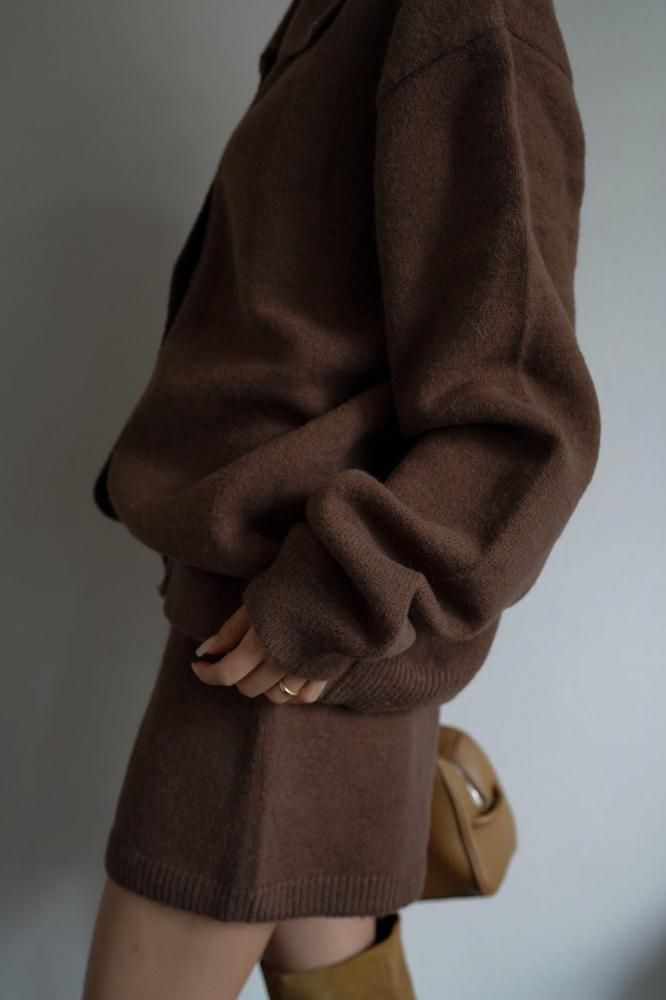 リラックスムード漂うニットカーディガンとショートパンツのセットアップ